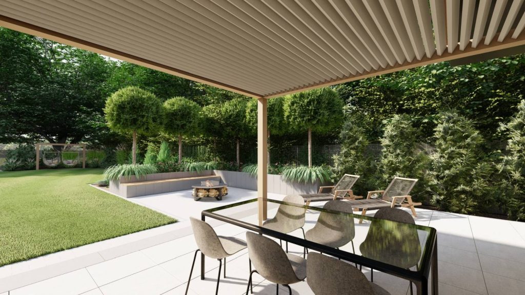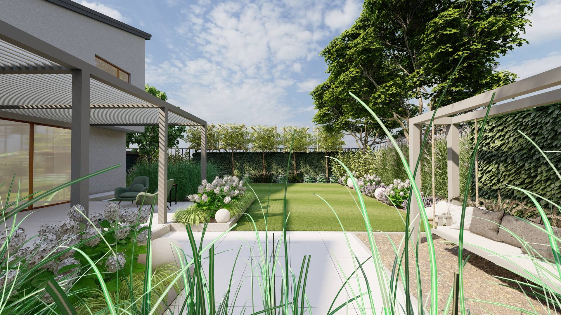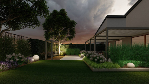 2. Wprowadź elementy, które nadają głębię – pergole, trejaże, bramki lub łagodne linie ścieżek pomagają uzyskać wrażenie przestrzeni.