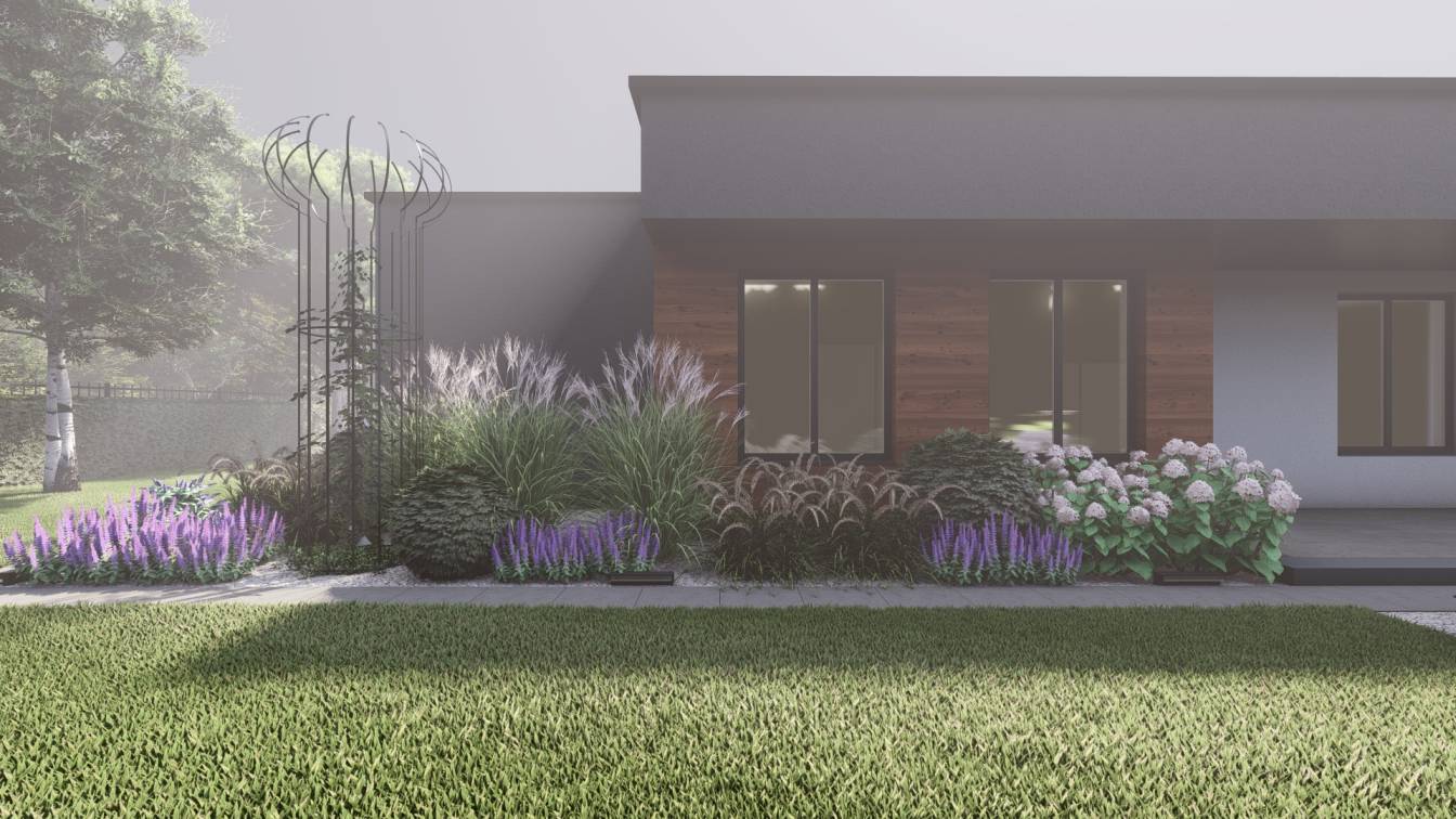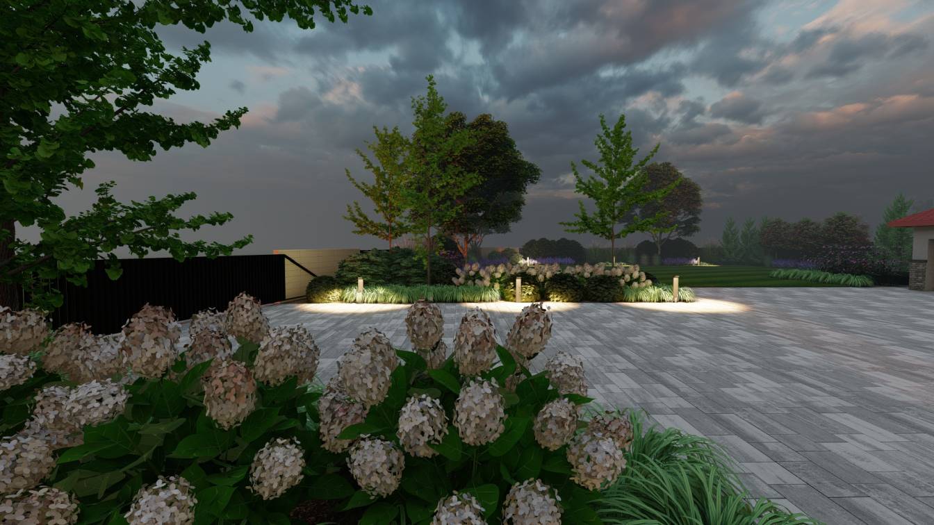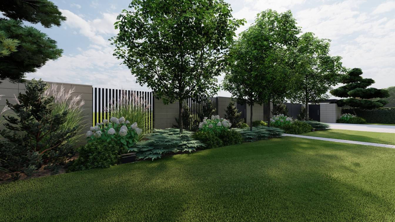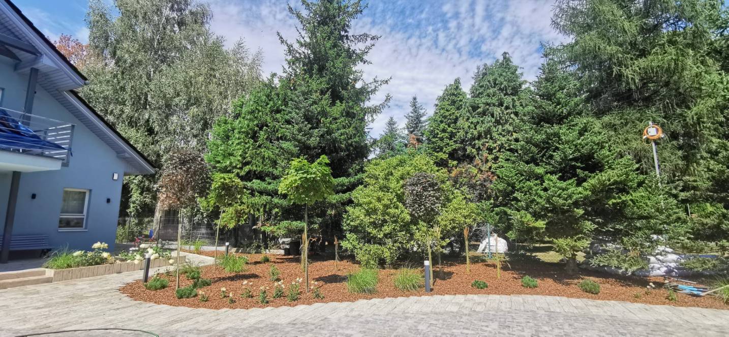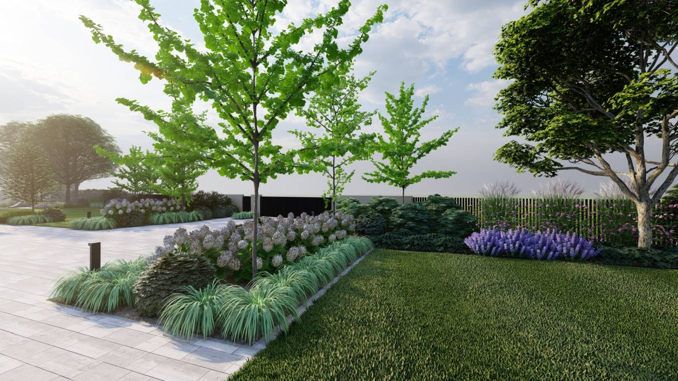 Dodatkowo zaplanowano hortensje bukietowe, jałowce płożące, trzmieliny oskrzydlone, miskanty i lilaki.