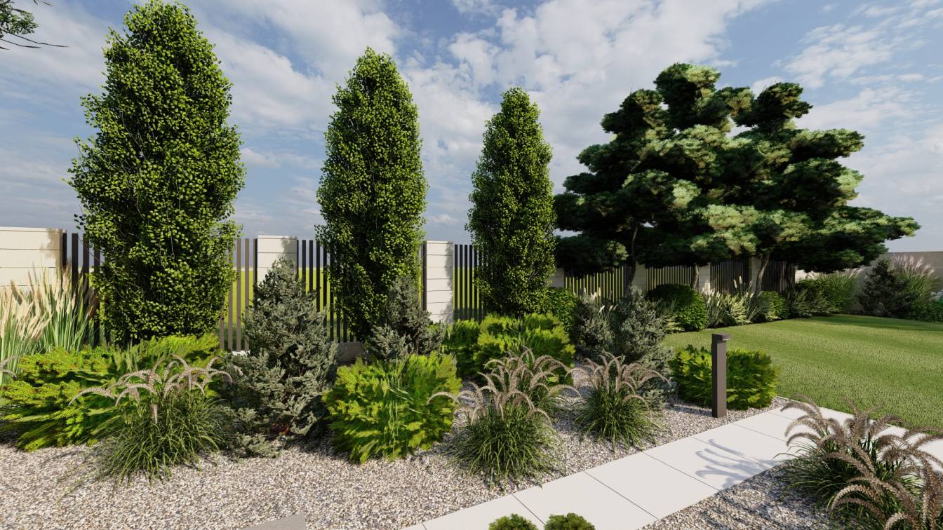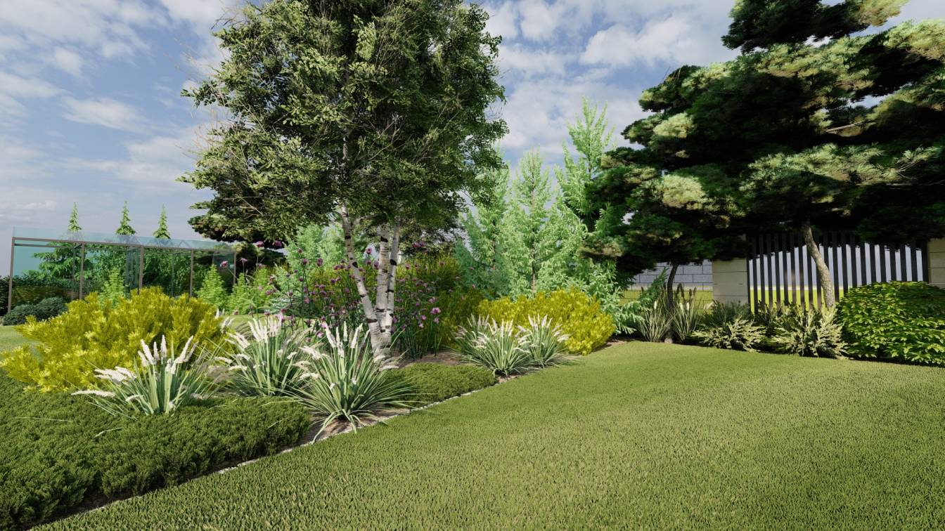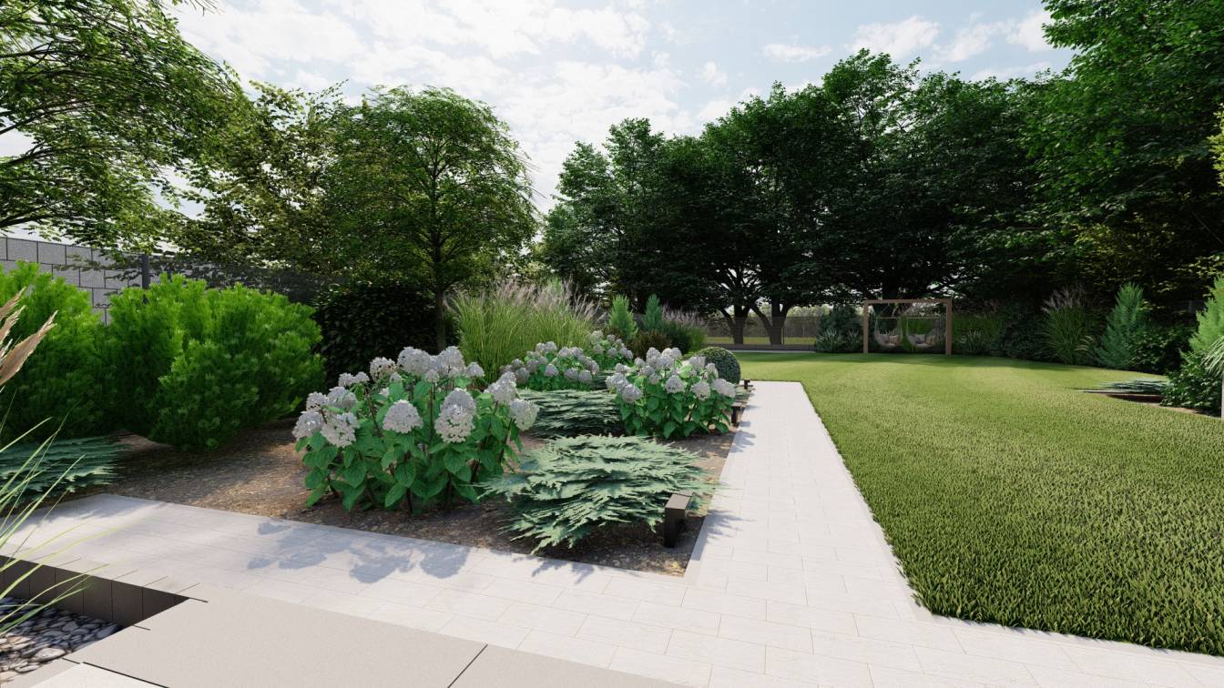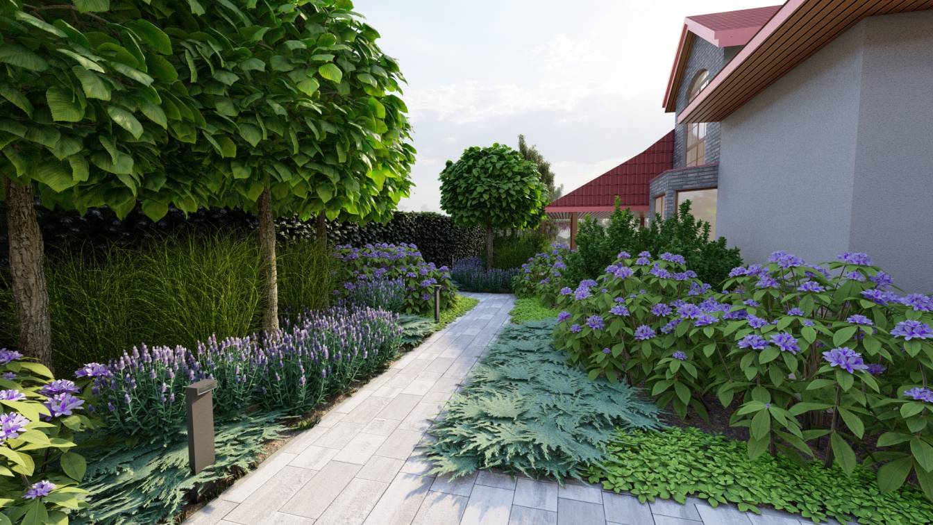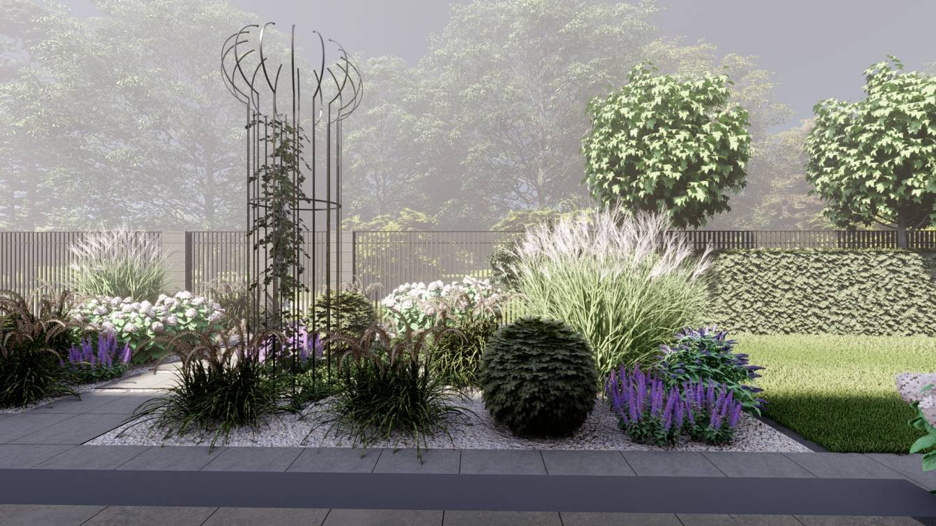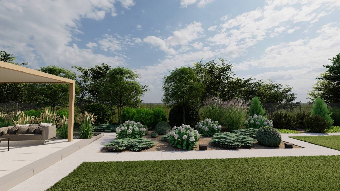 Dodatkowo zaplanowano hortensje bukietowe, jałowce płożące, trzmieliny oskrzydlone, miskanty i lilaki.