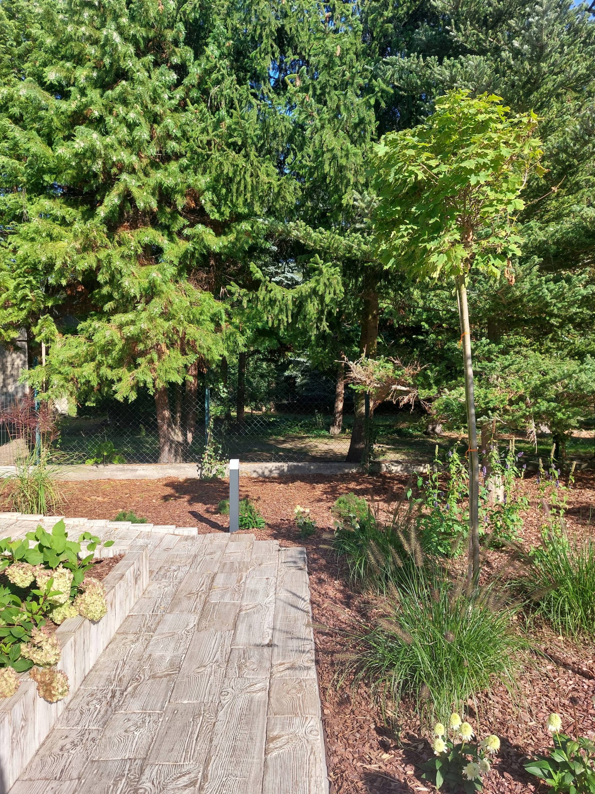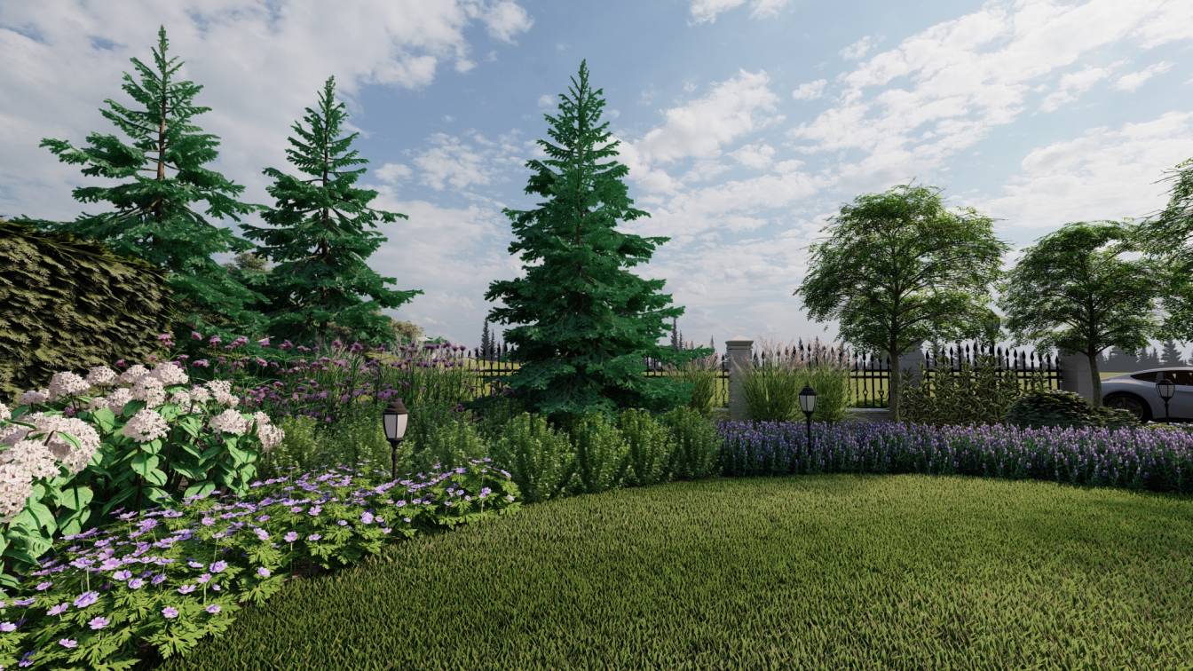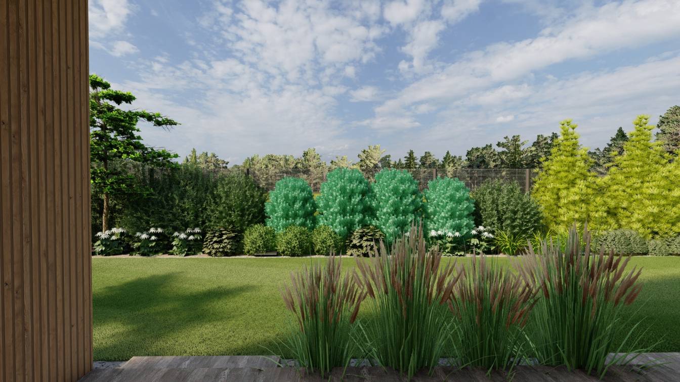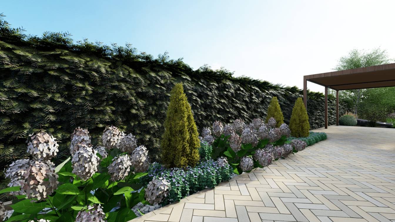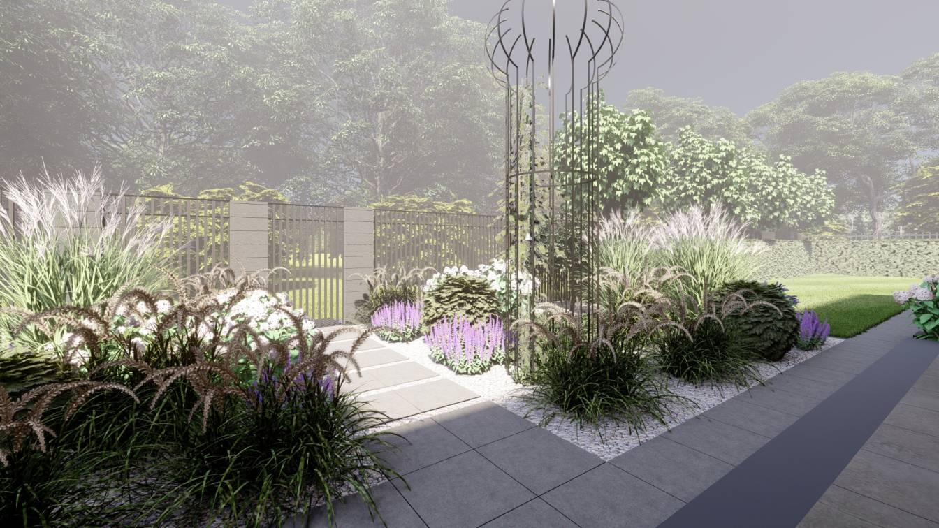 Dodatkowo zaplanowano hortensje bukietowe, jałowce płożące, trzmieliny oskrzydlone, miskanty i lilaki.