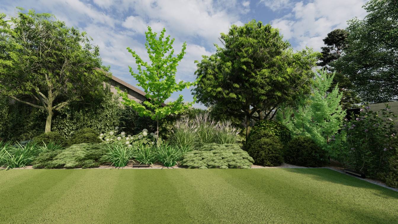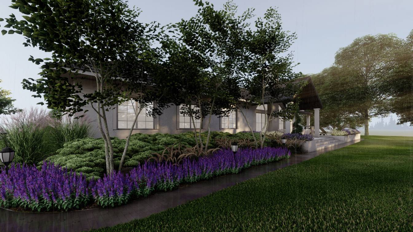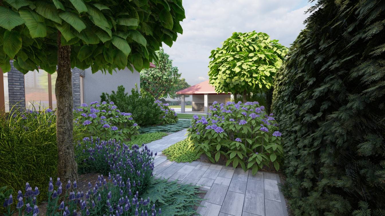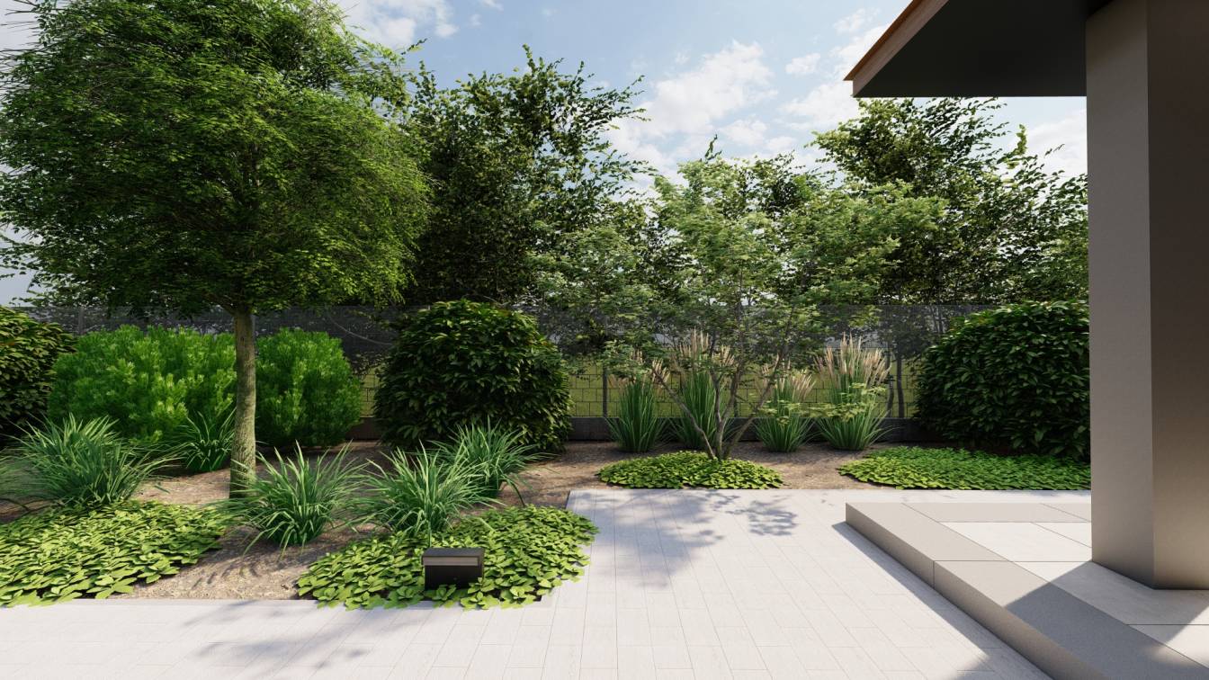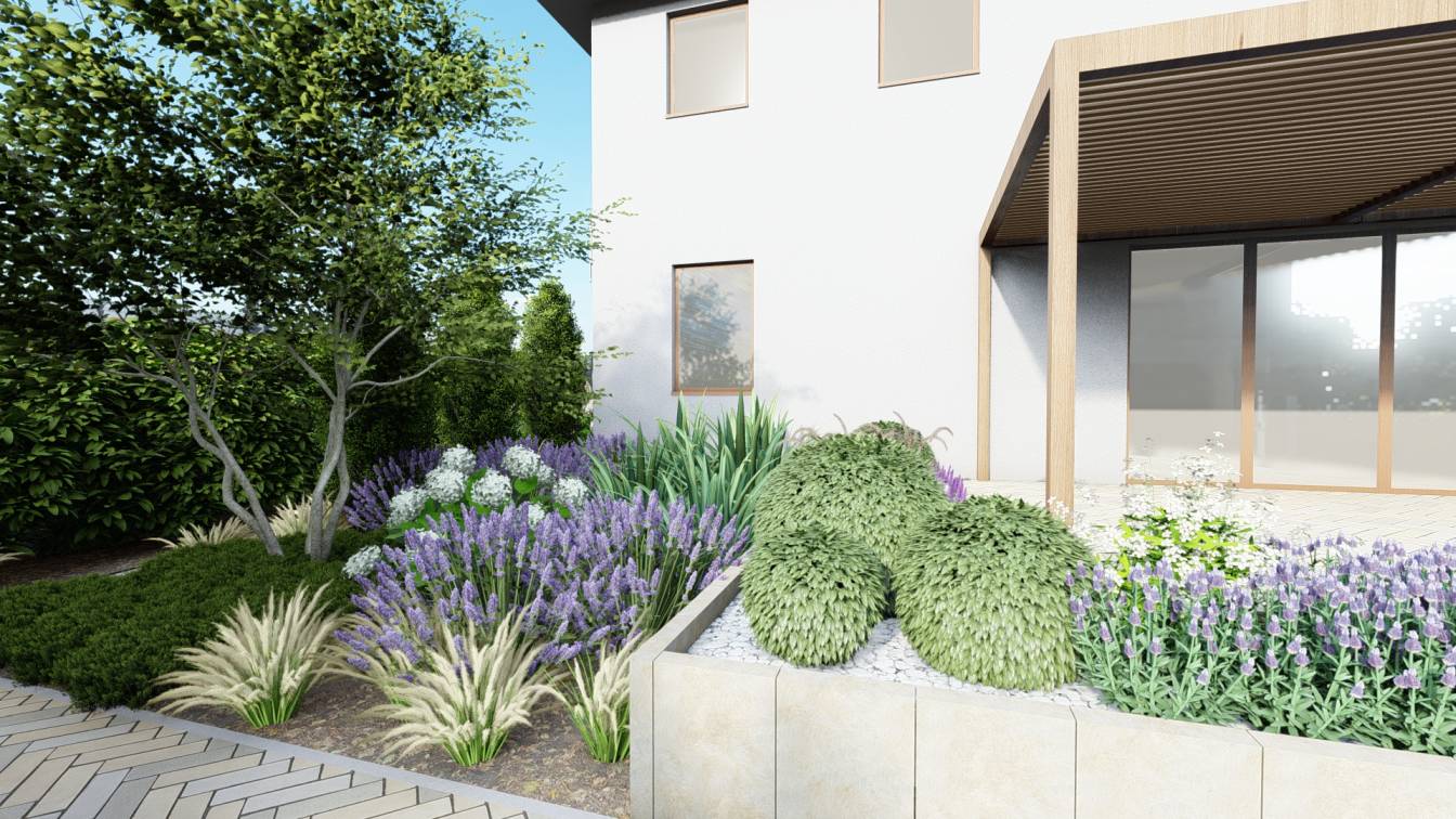 Dodatkowo zaplanowano hortensje bukietowe, jałowce płożące, trzmieliny oskrzydlone, miskanty i lilaki.