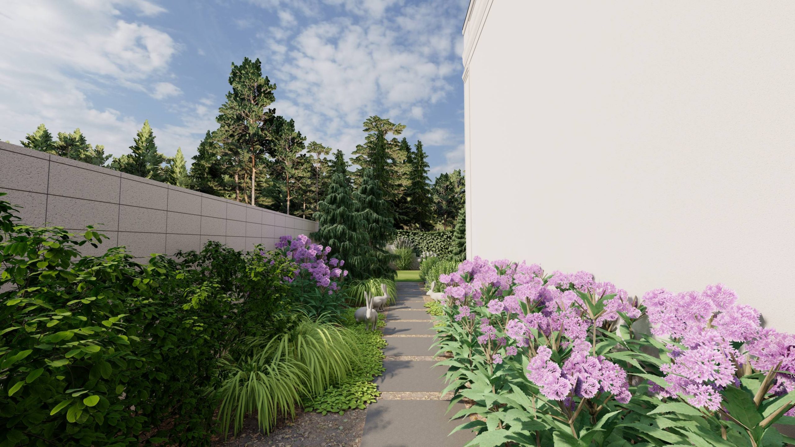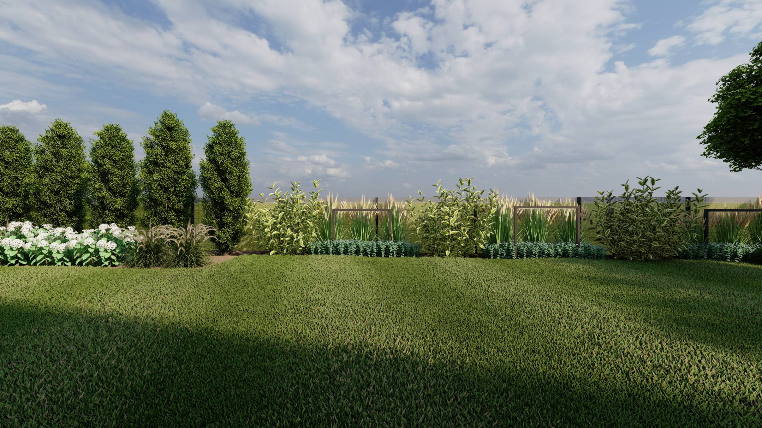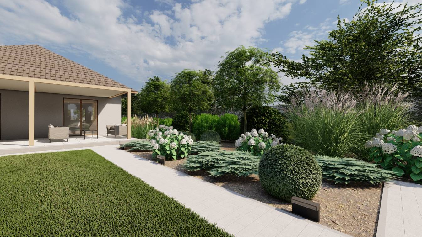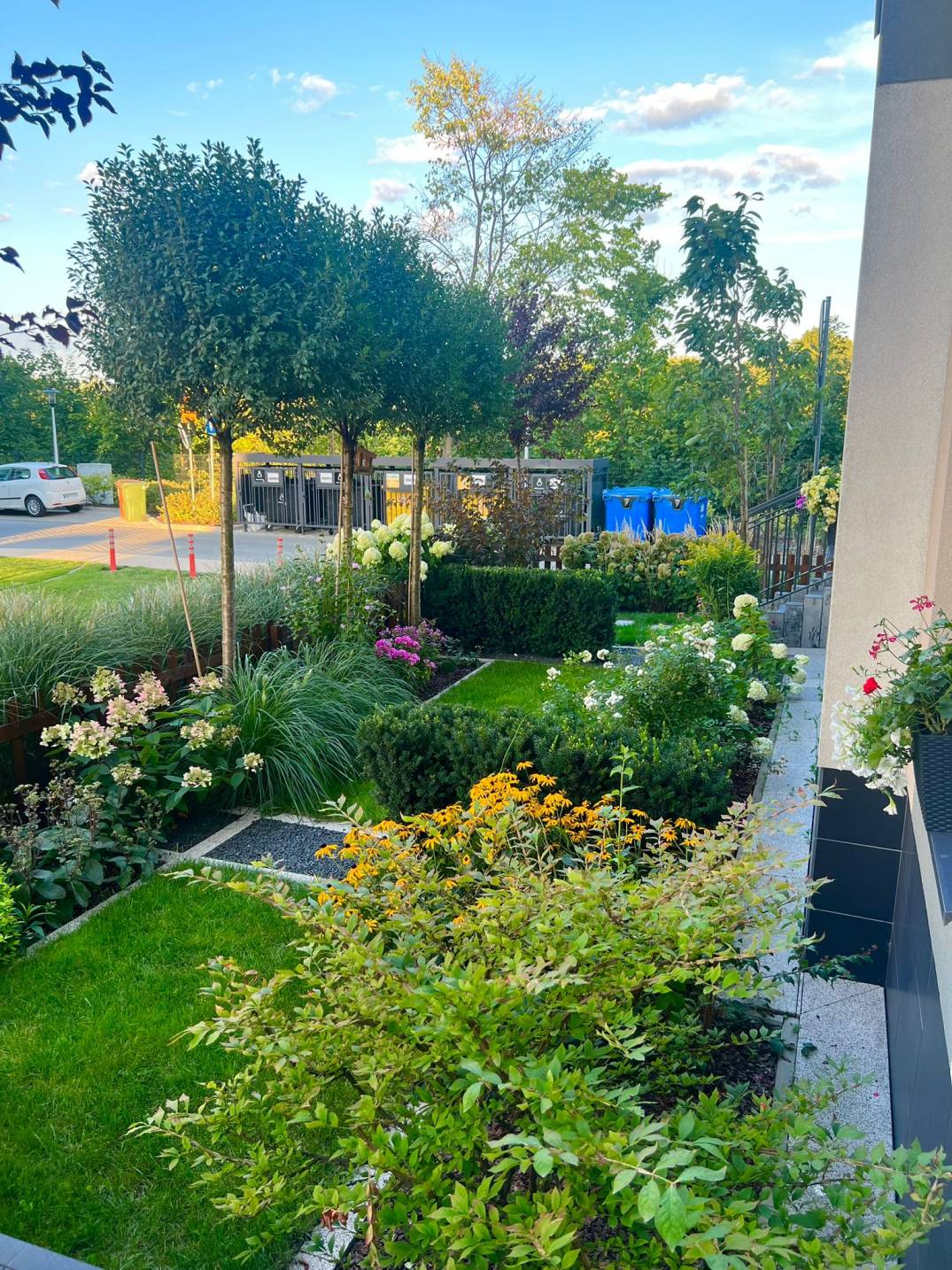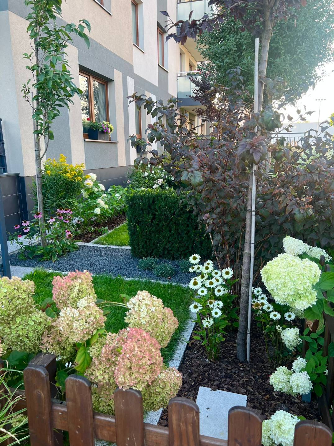 Dodatkowo zaplanowano hortensje bukietowe, jałowce płożące, trzmieliny oskrzydlone, miskanty i lilaki.