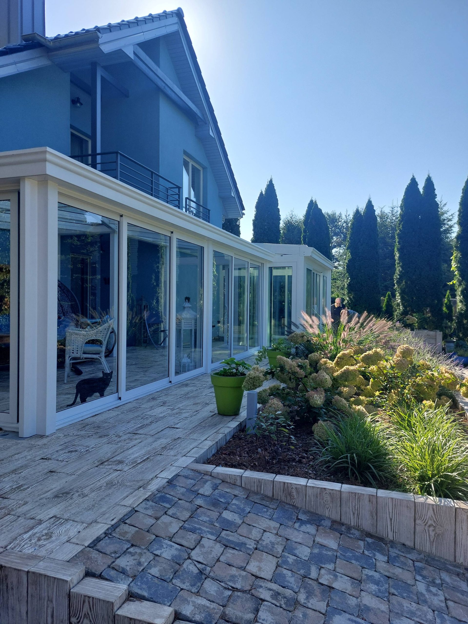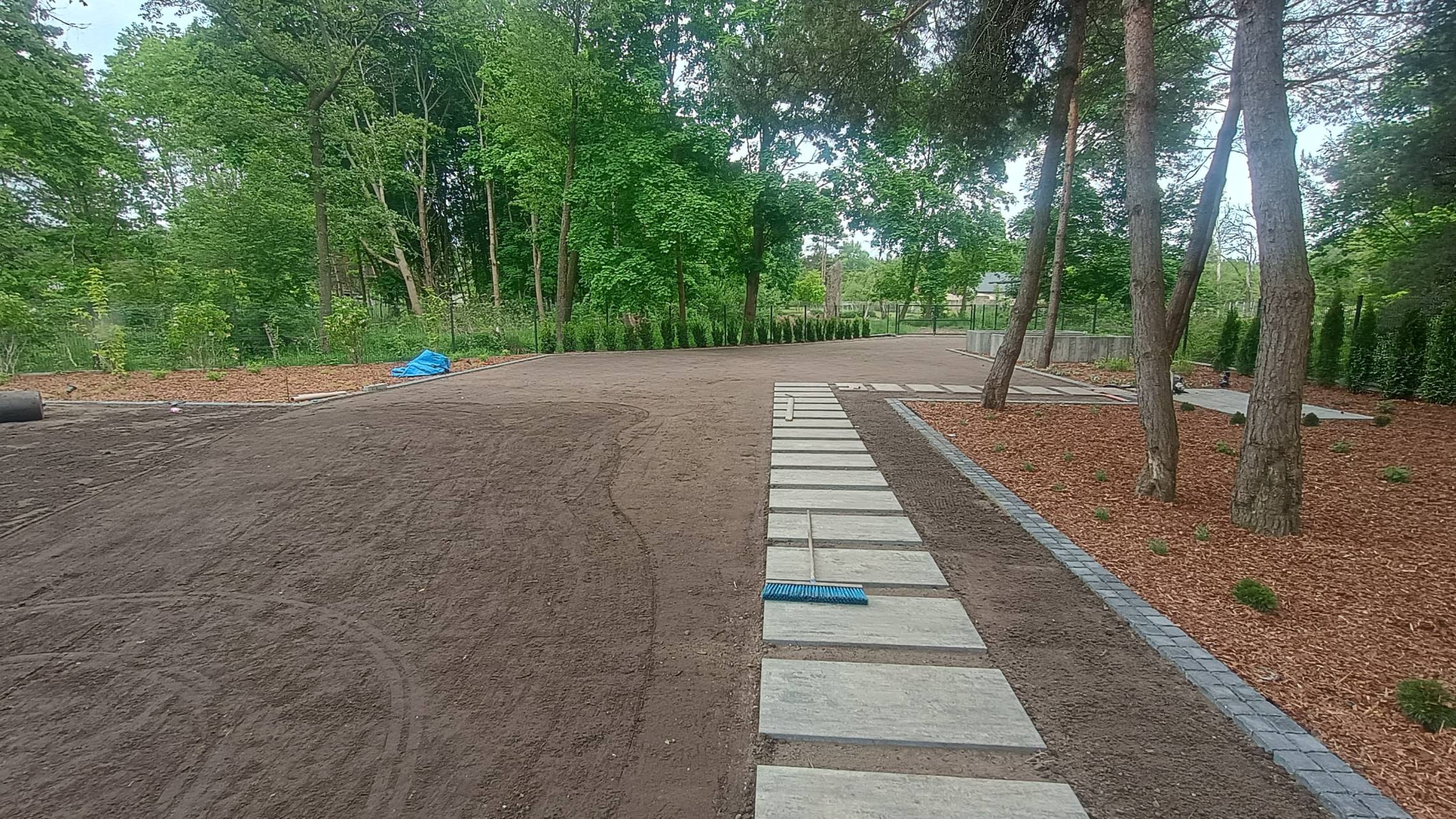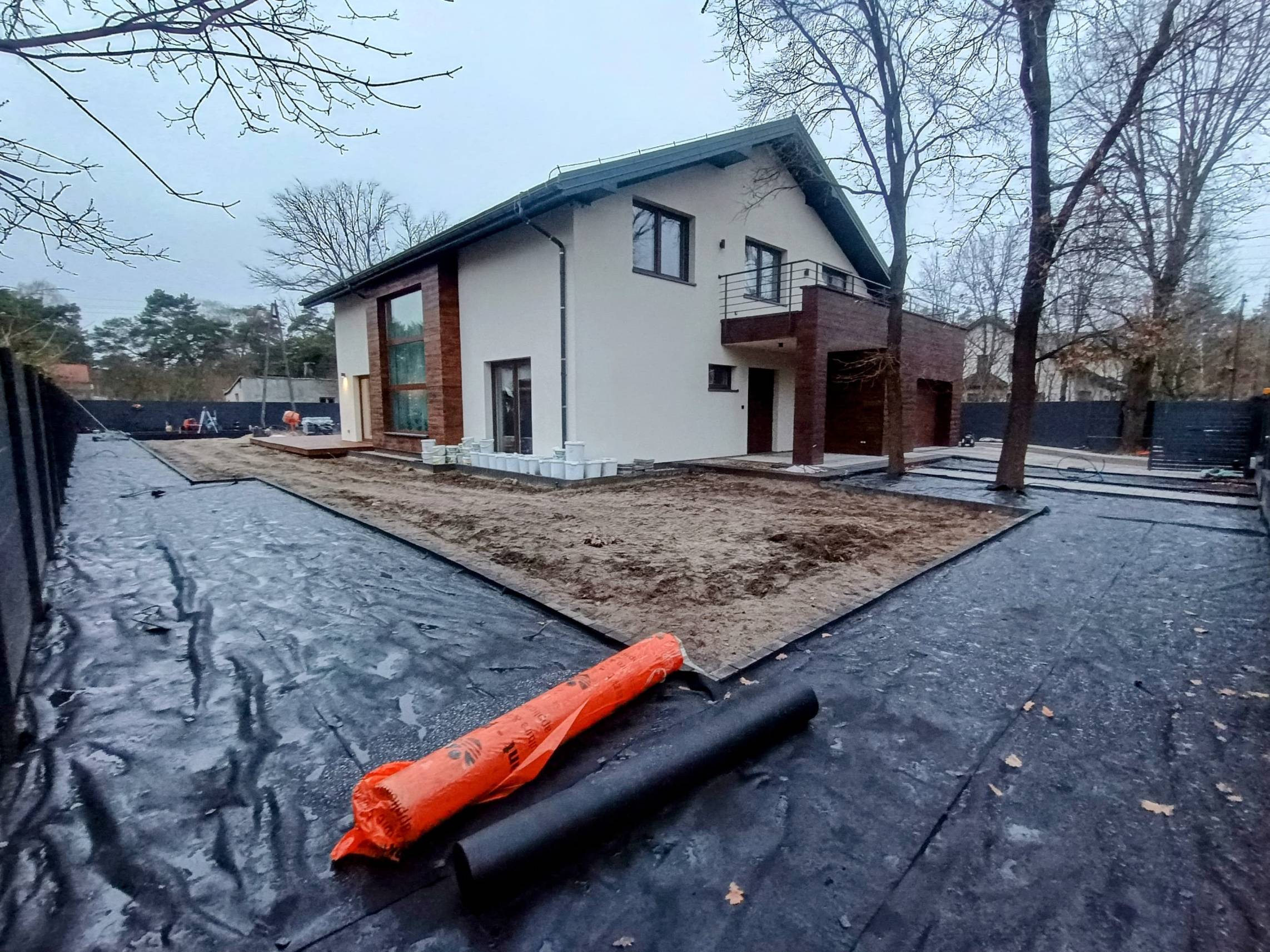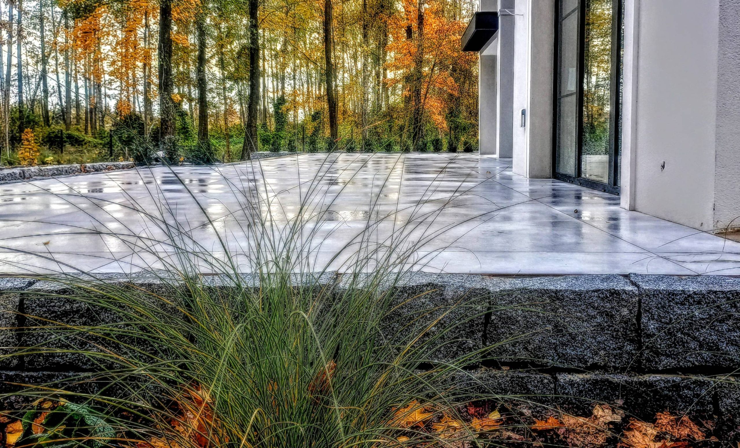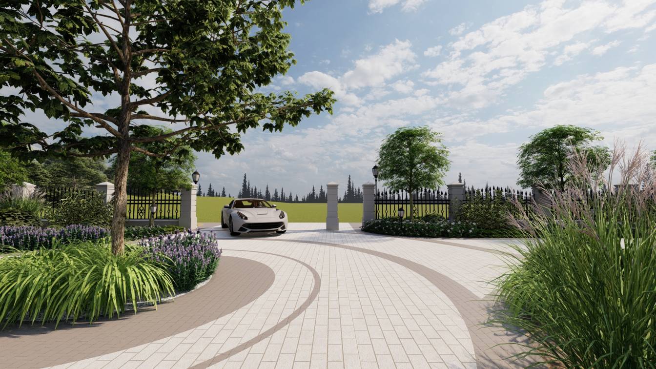 Właścicielom zależało na opracowaniu najbliższego otoczenia domu, wraz z podjazdem i tarasem.