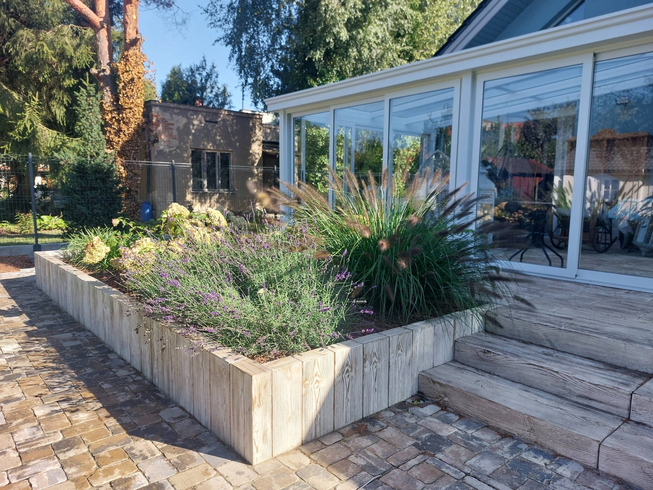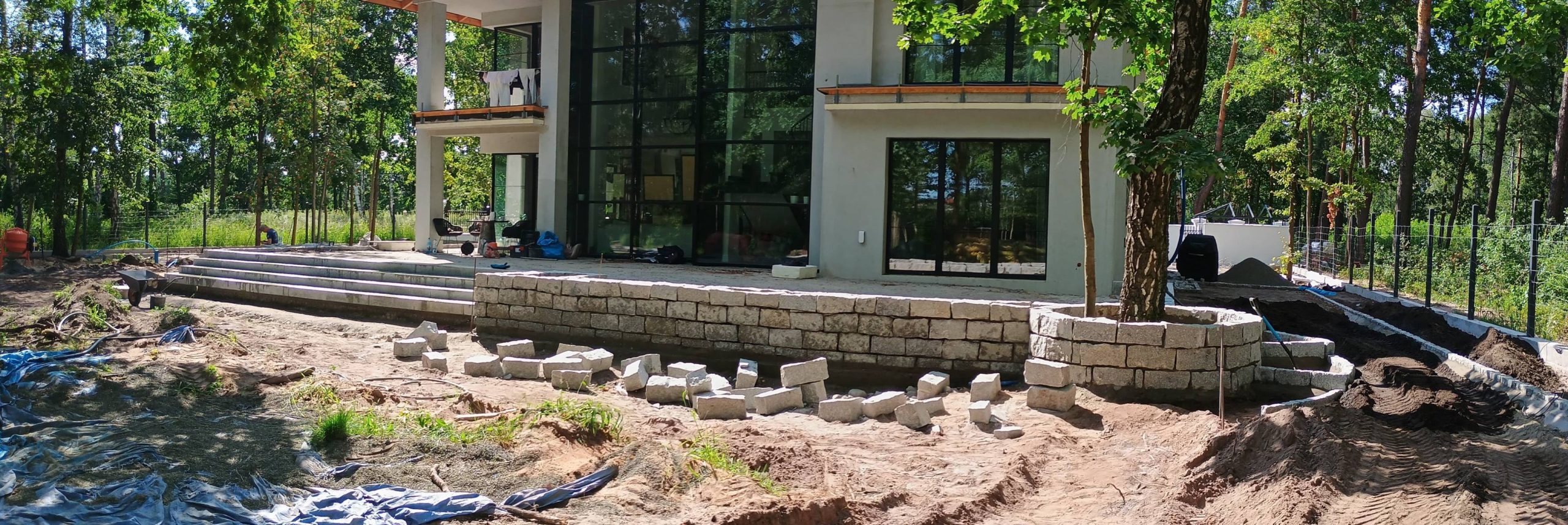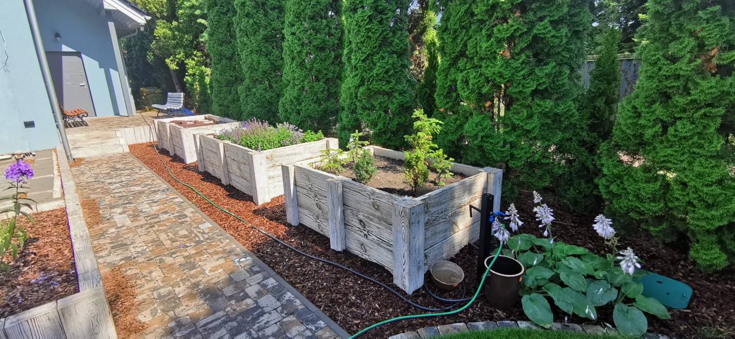 Wysokie betonowe palisady umożliwiły wykonanie donic przy tarasie oraz budowę wgłębnika.