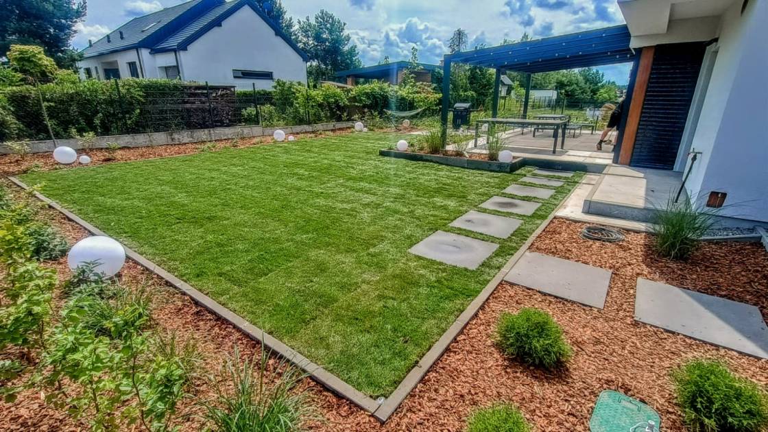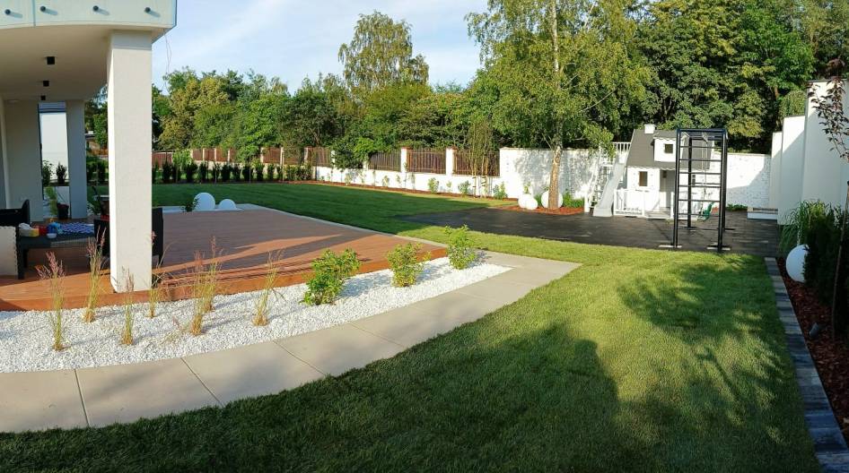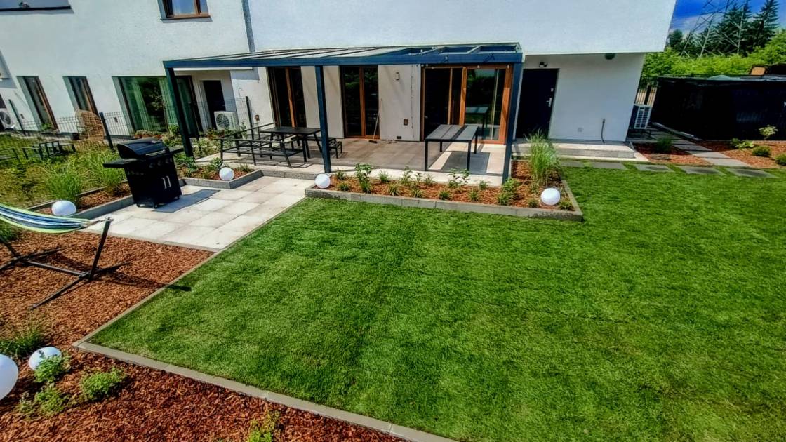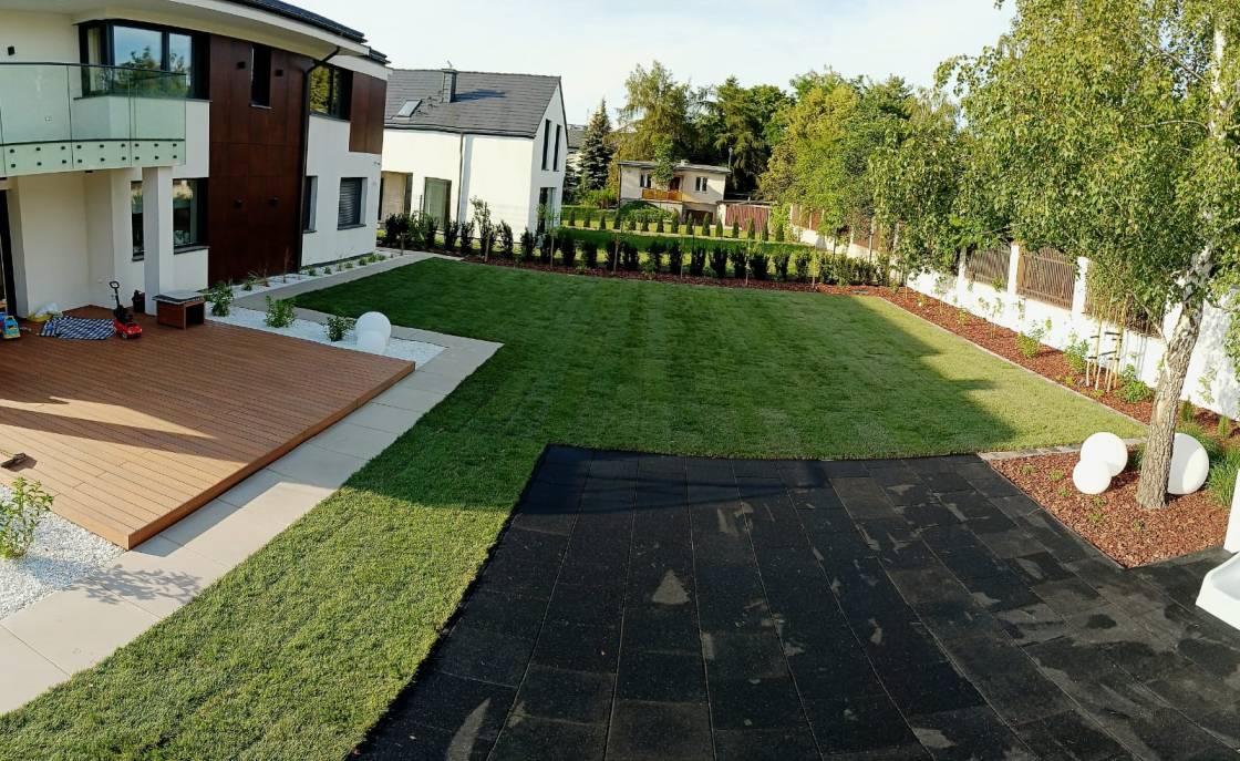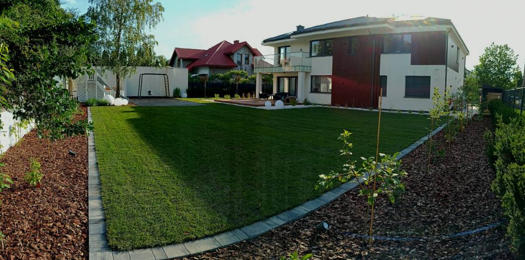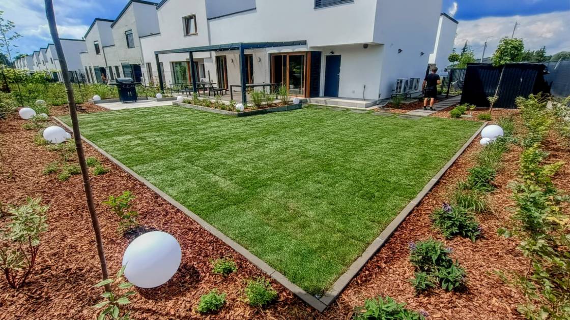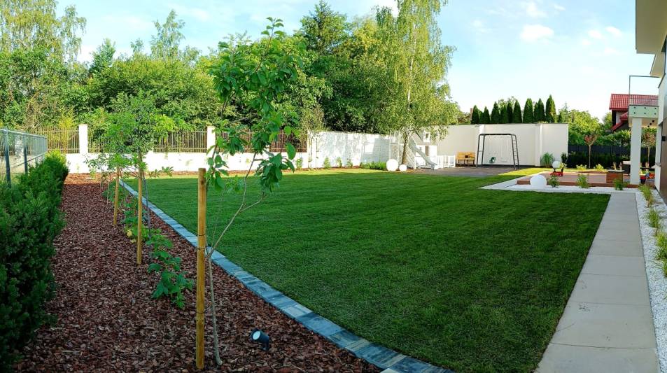 Trawnik zaplanowano możliwie największy, z myślą o rekreacyjnym użytkowaniu.