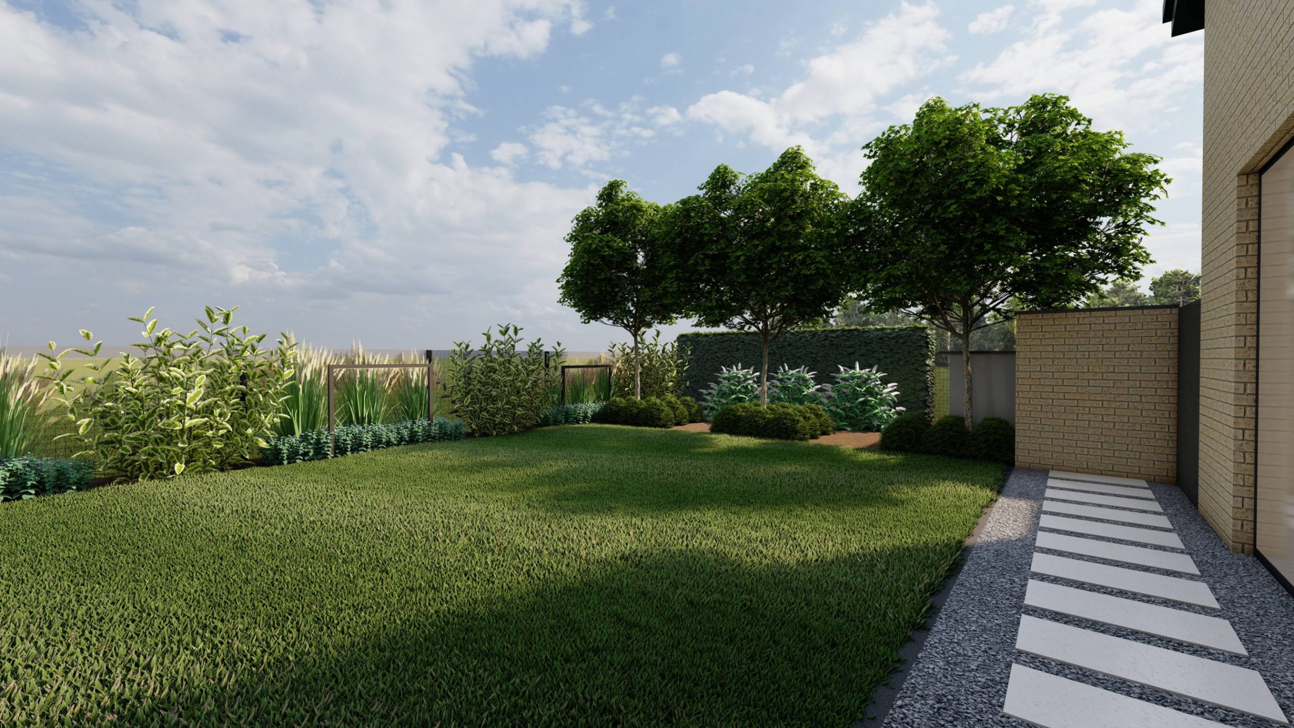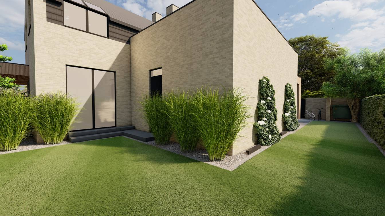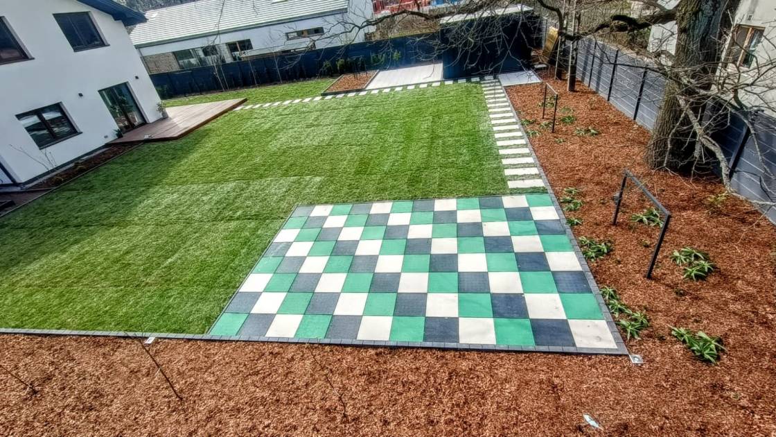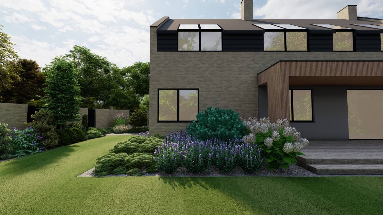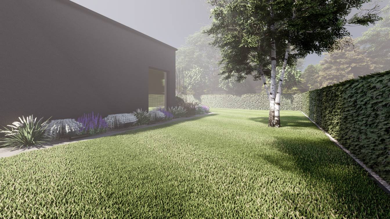 Trawnik zaplanowano możliwie największy, z myślą o rekreacyjnym użytkowaniu.
