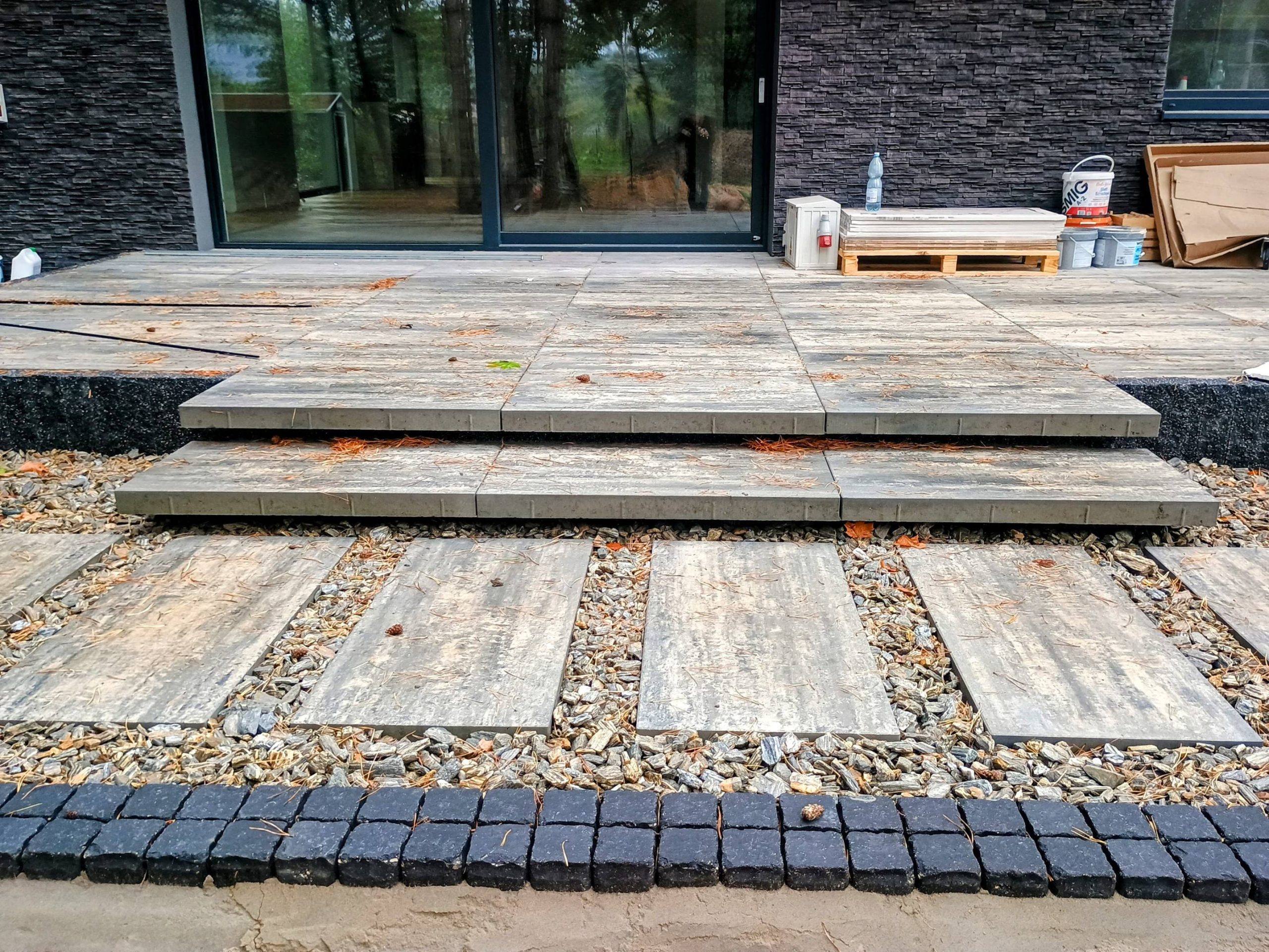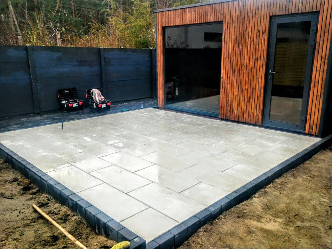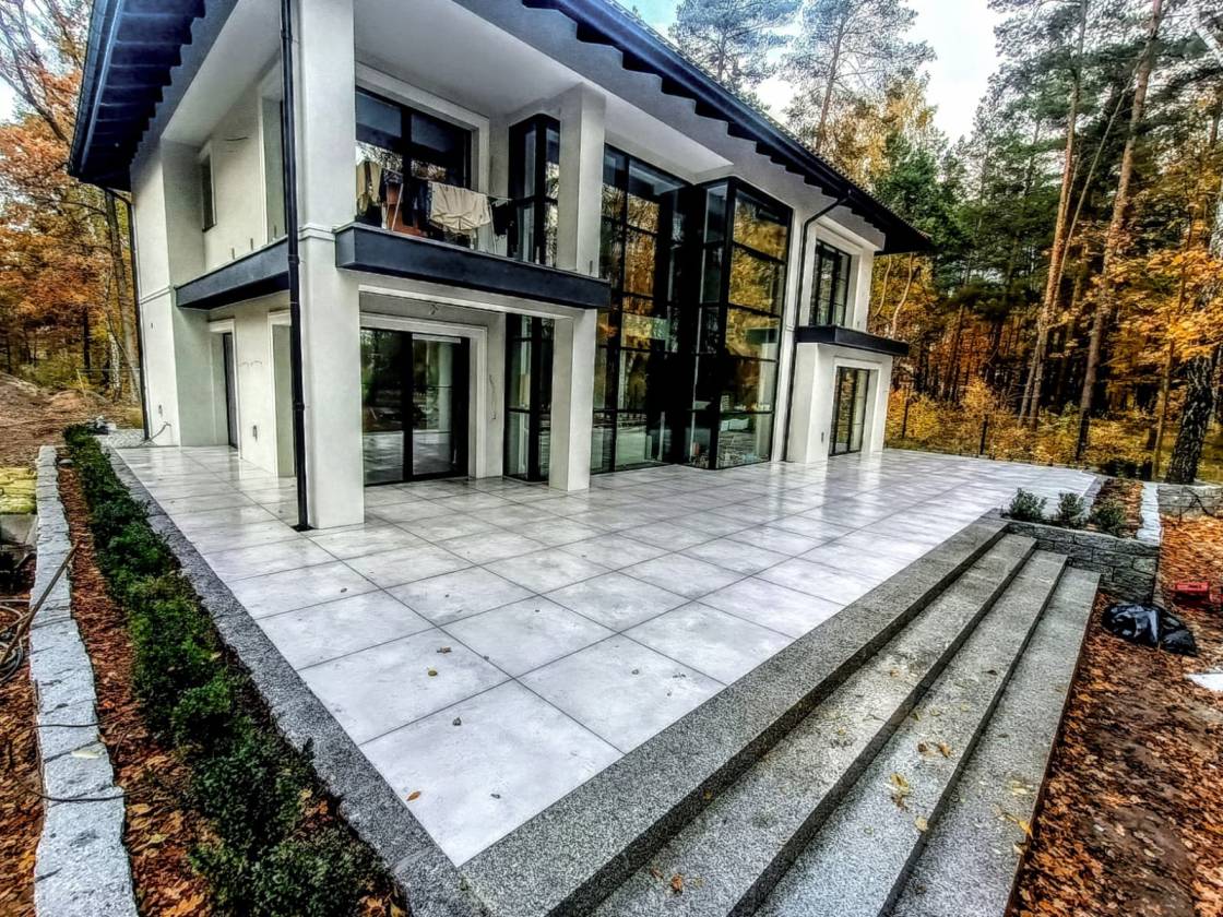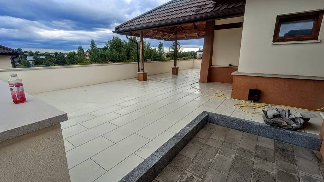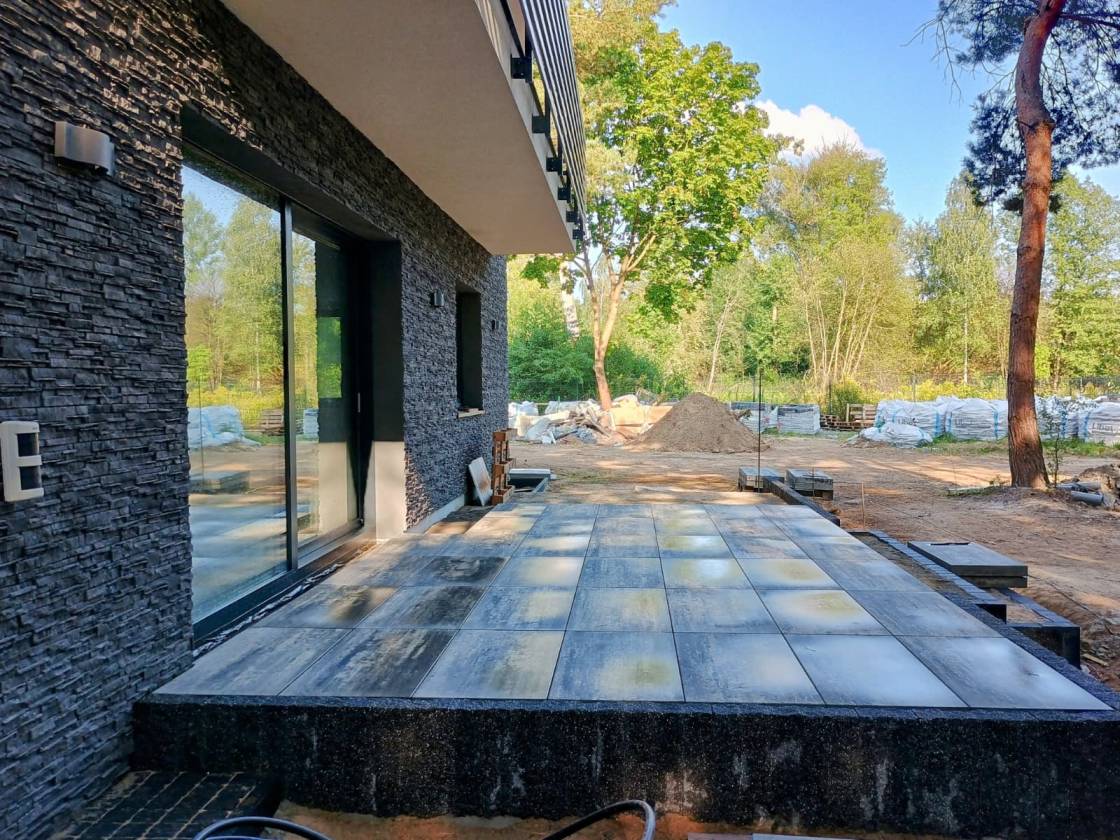 Taras i strefa wejściowa wykonane z płyt 80x40 cm.
