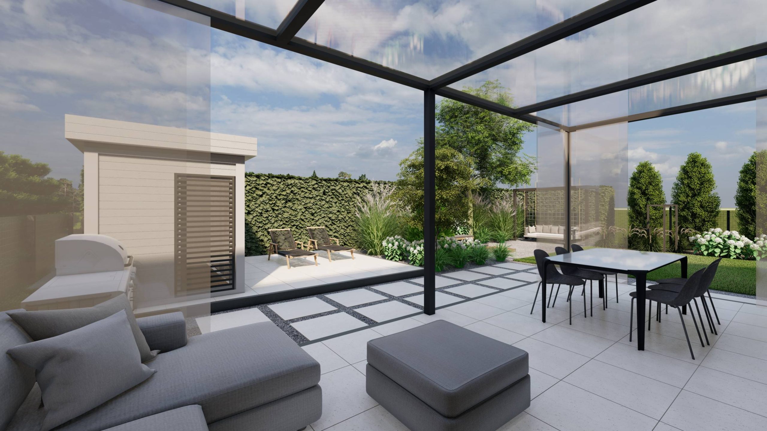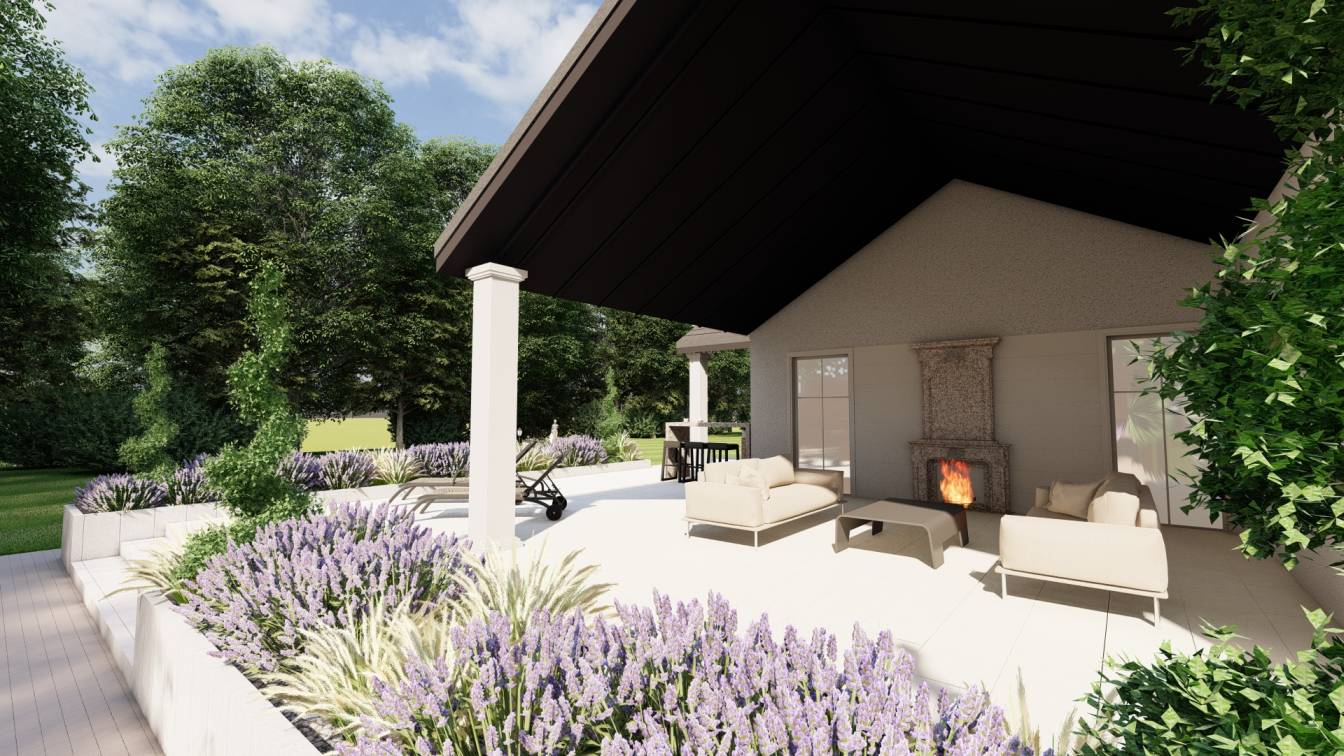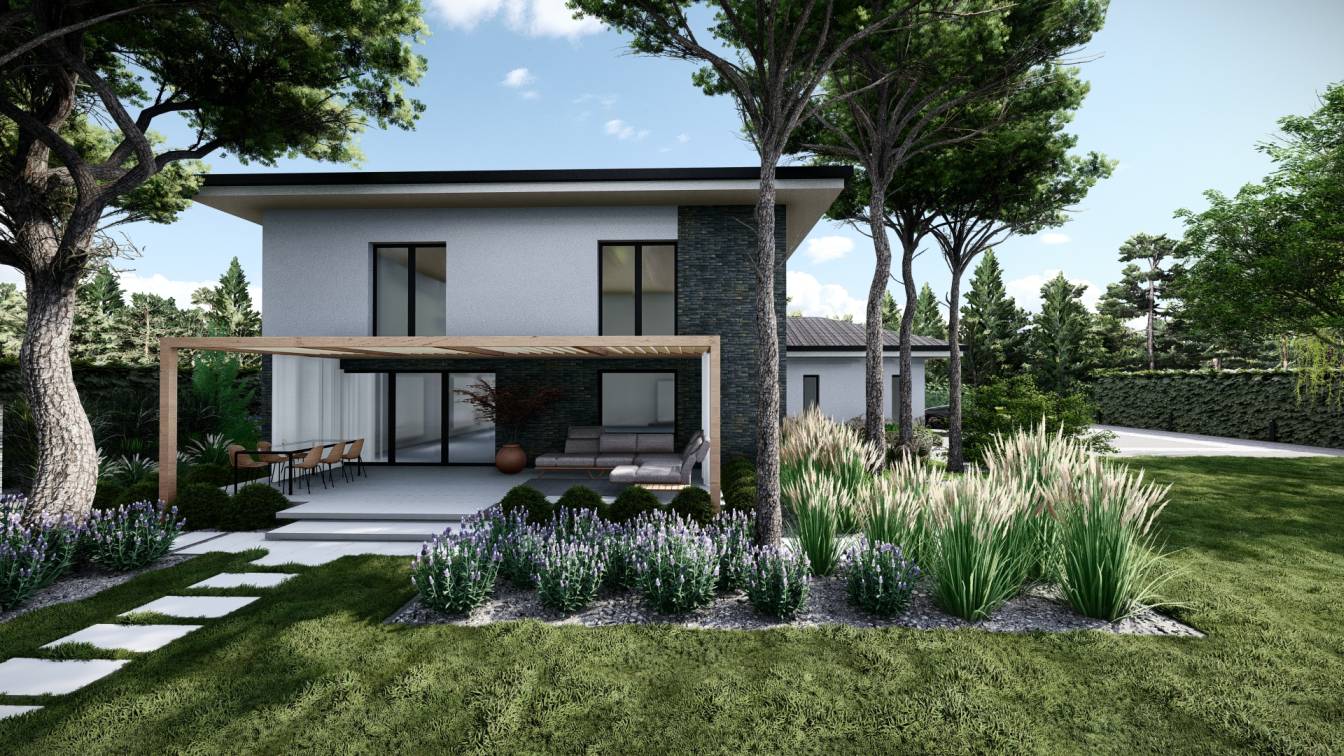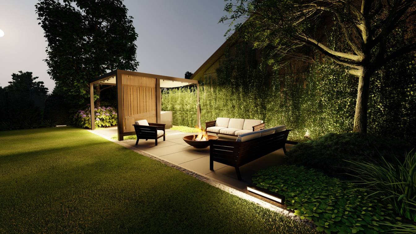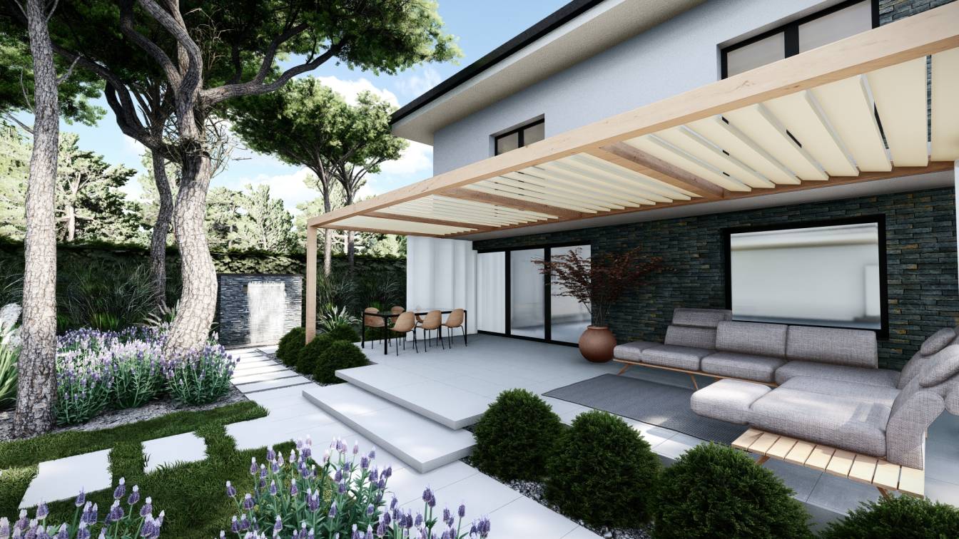 Zaplanowano też miejsce na pergolę, pod którą można ustawić jacuzzi lub grill oraz meble do biesiadowania.