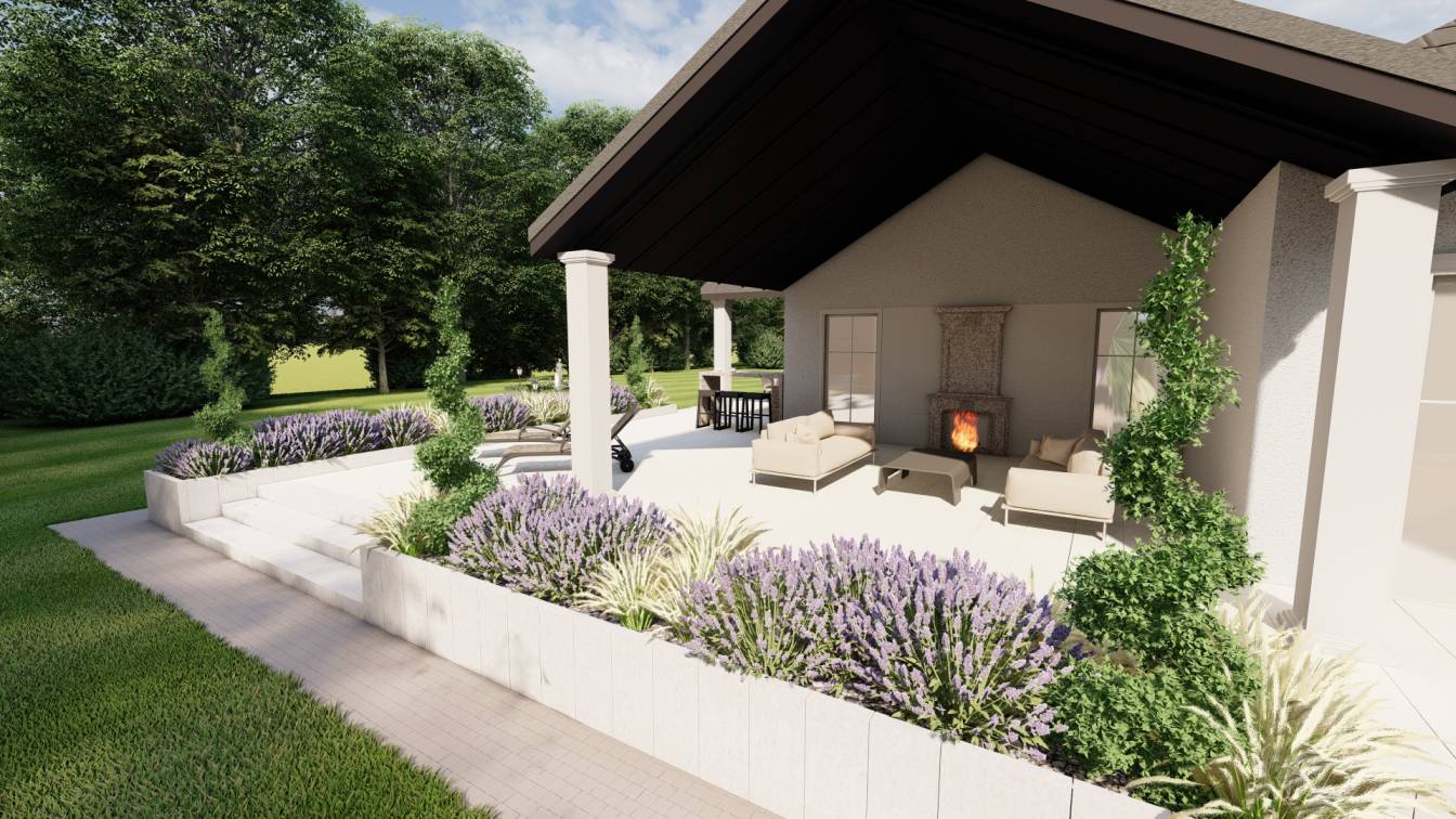 Ogród zaprojektowany w stylu śródziemnomorskim.