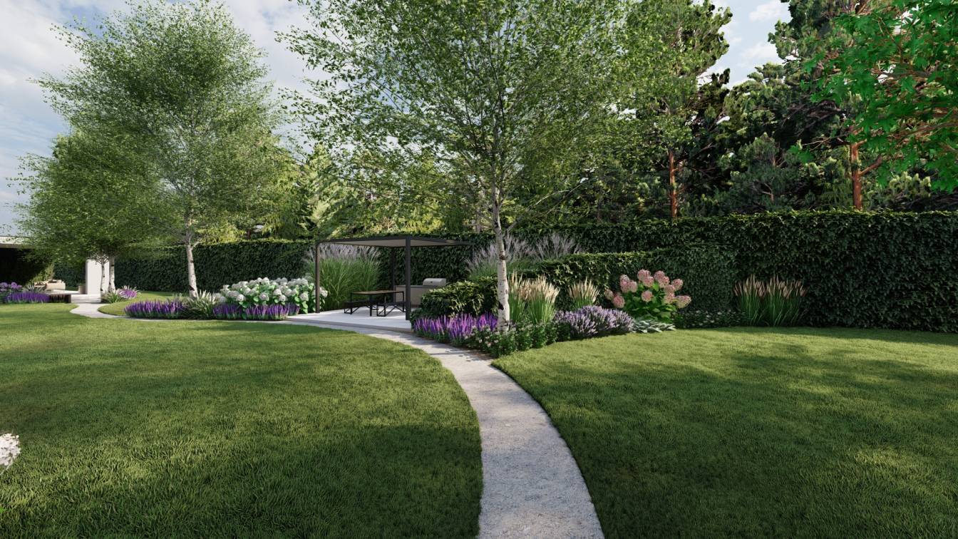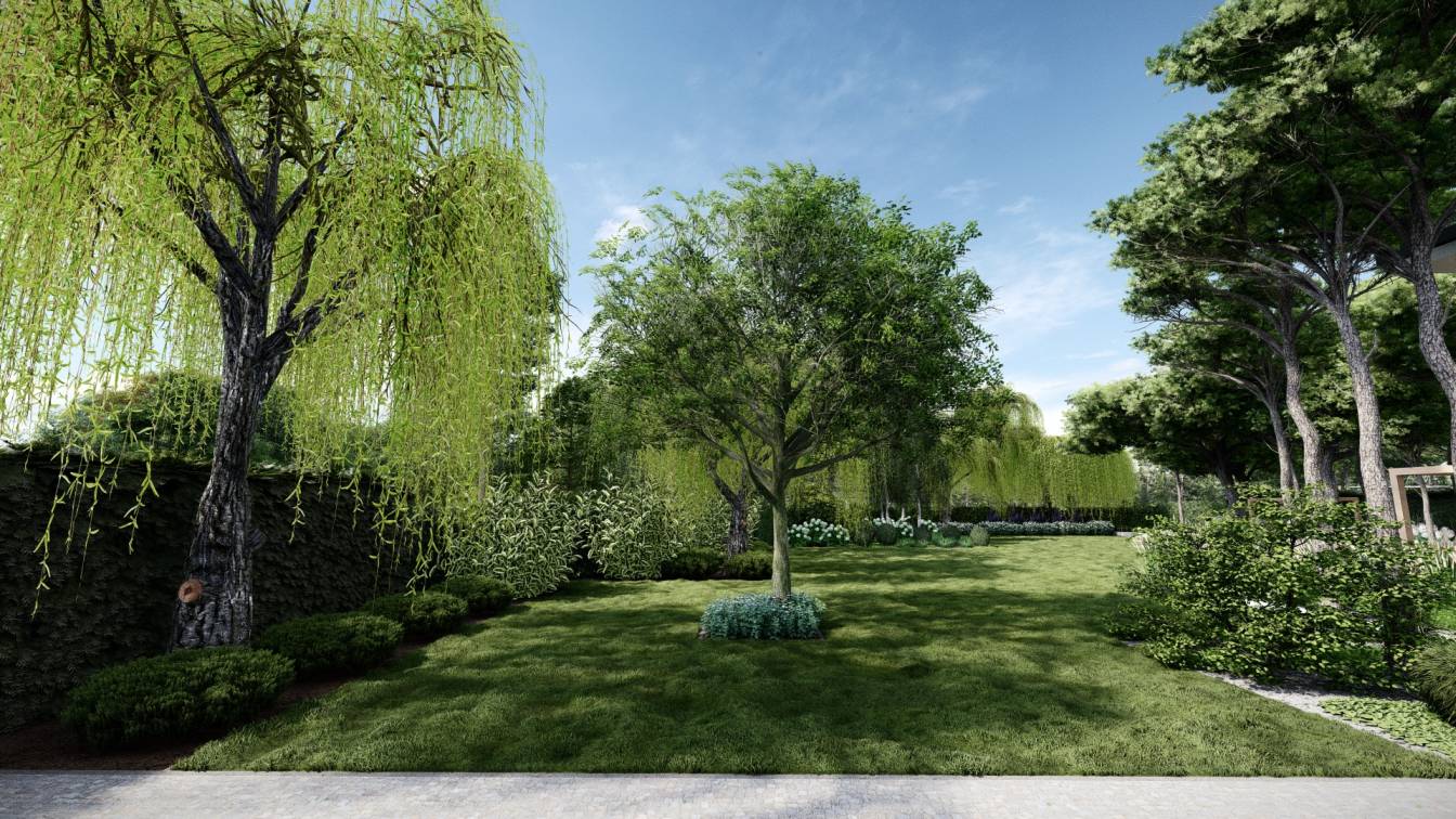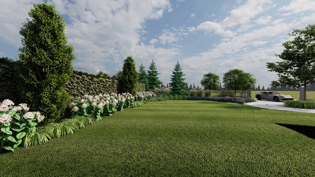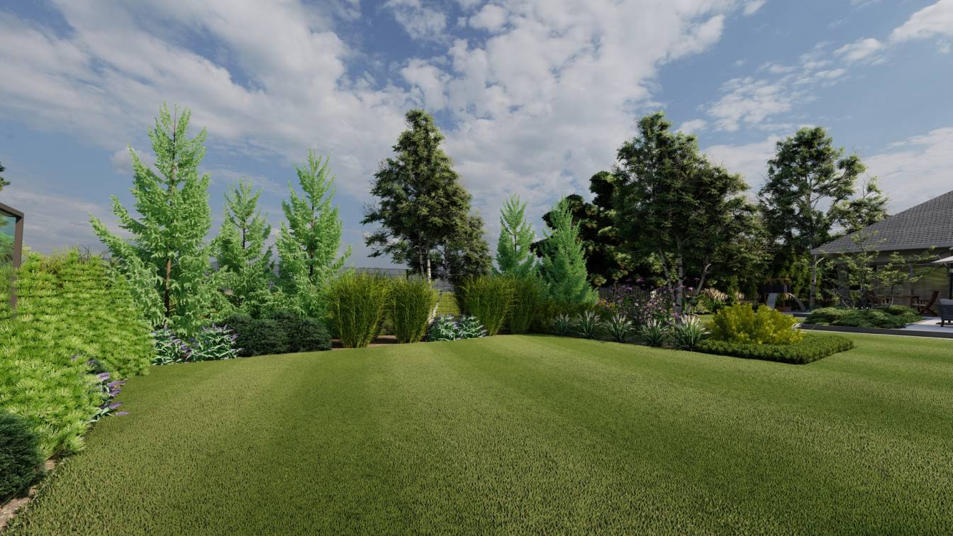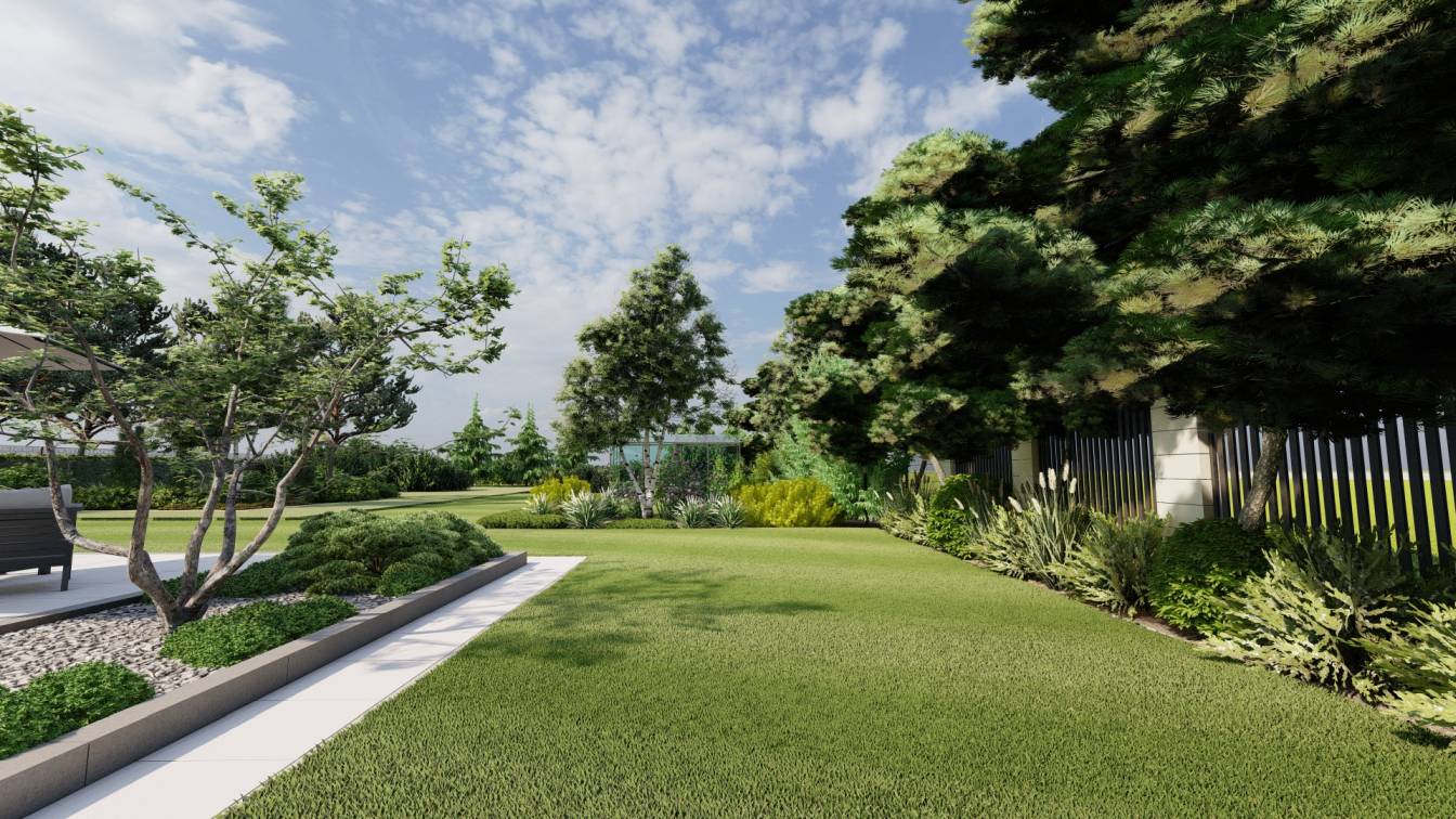 Projekt dużego ogrodu na działce o powierzchni ponad 3 tys. m2.