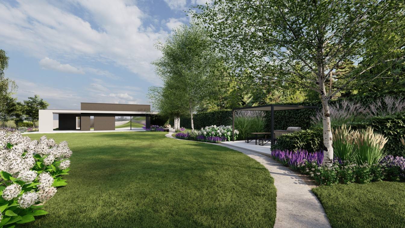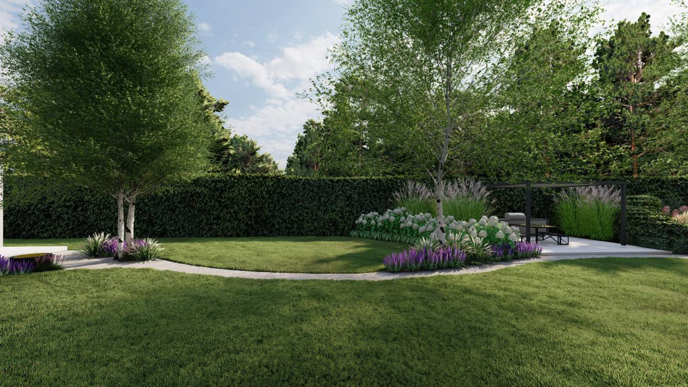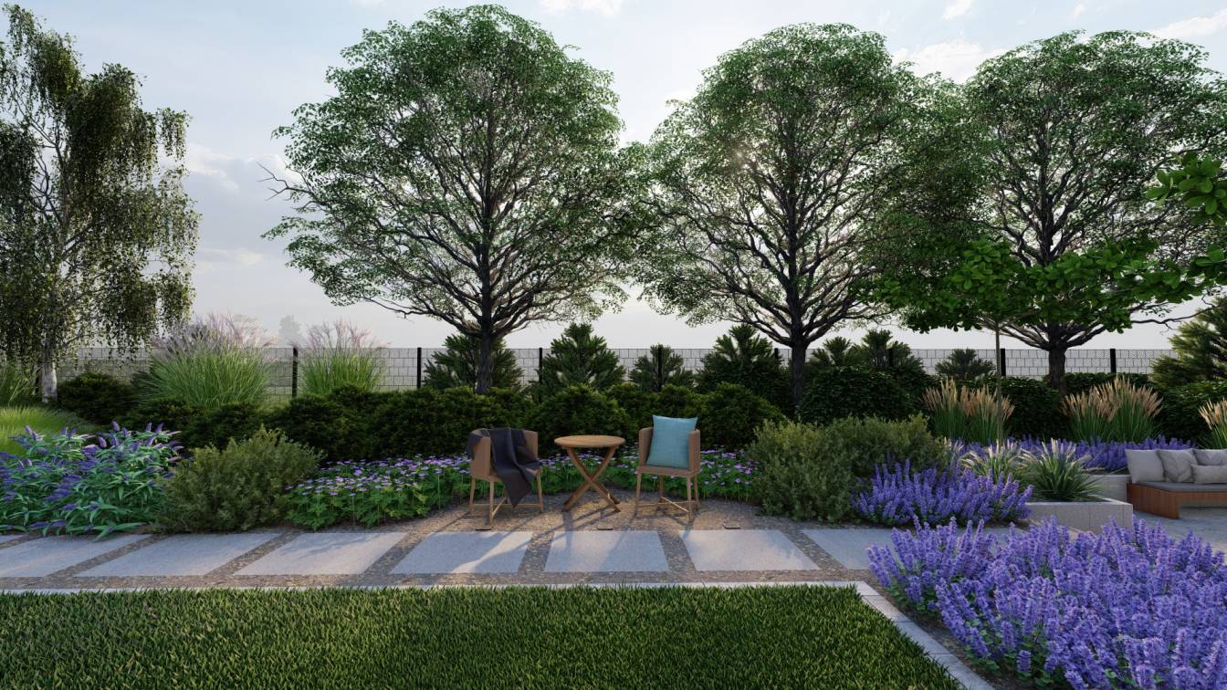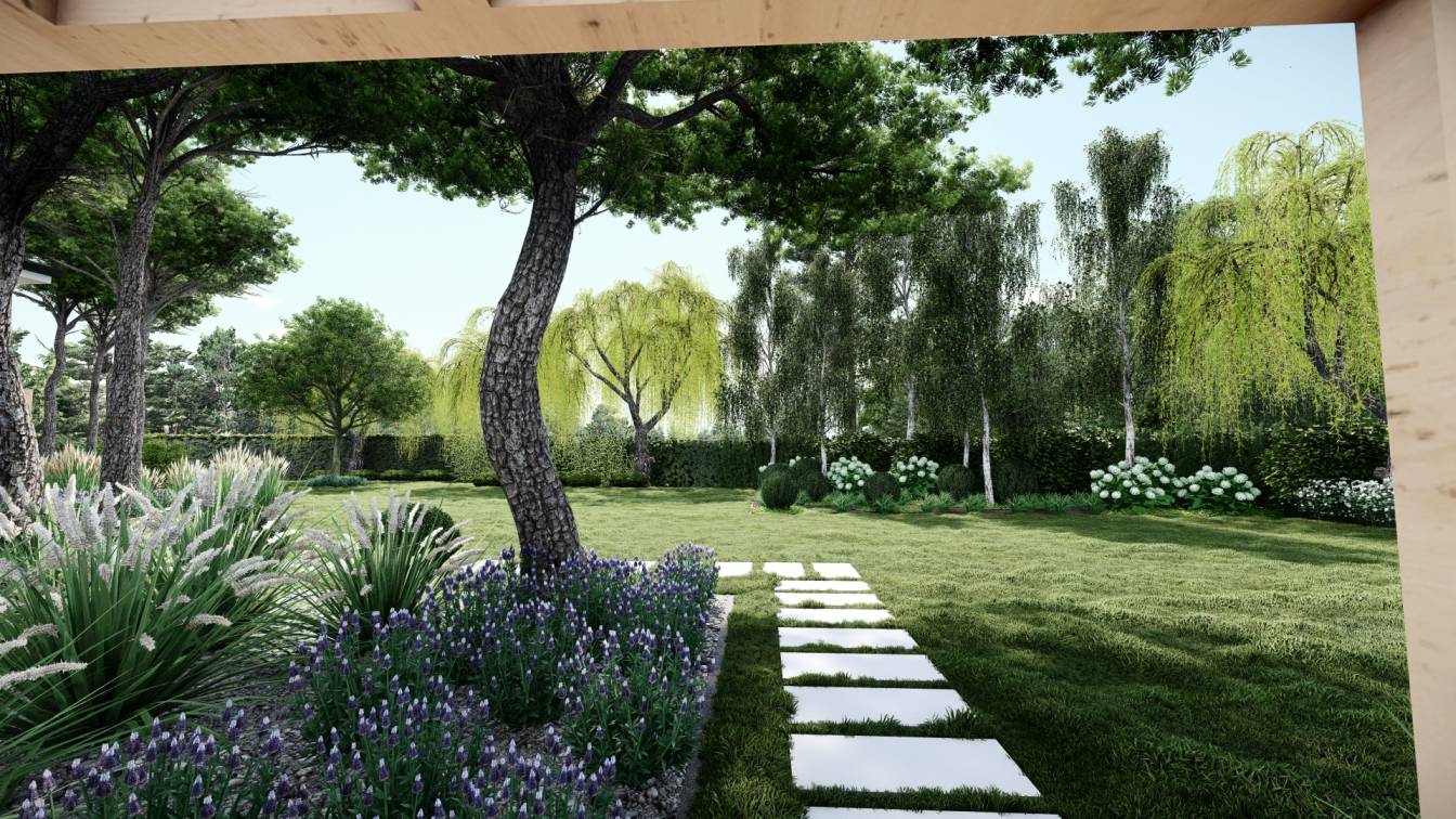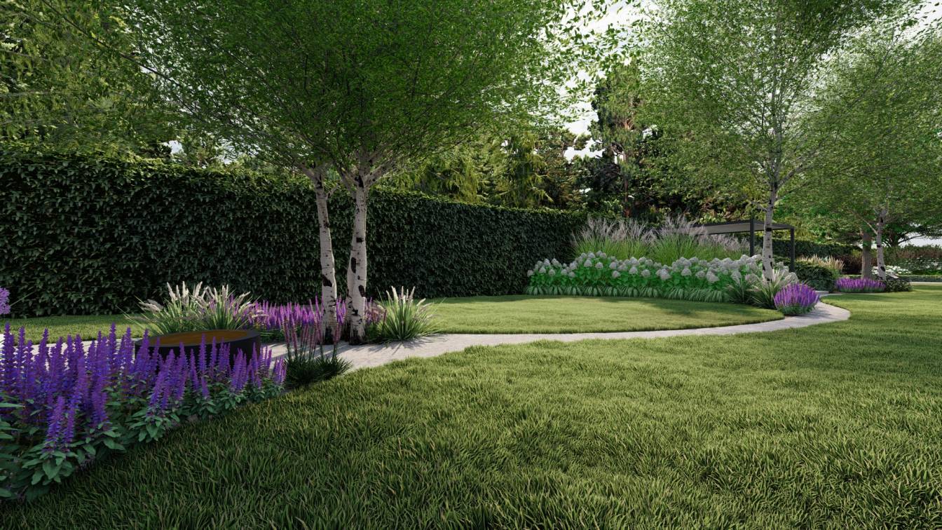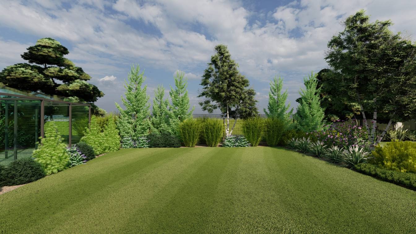 Projekt dużego ogrodu na działce o powierzchni ponad 3 tys. m2.