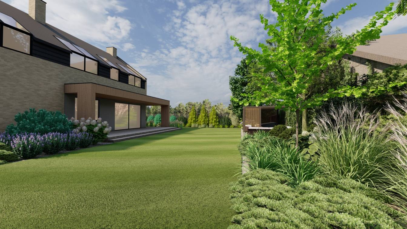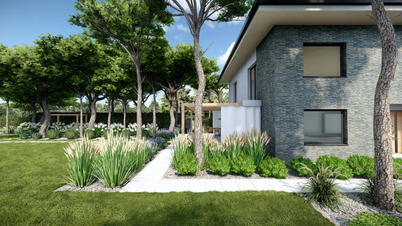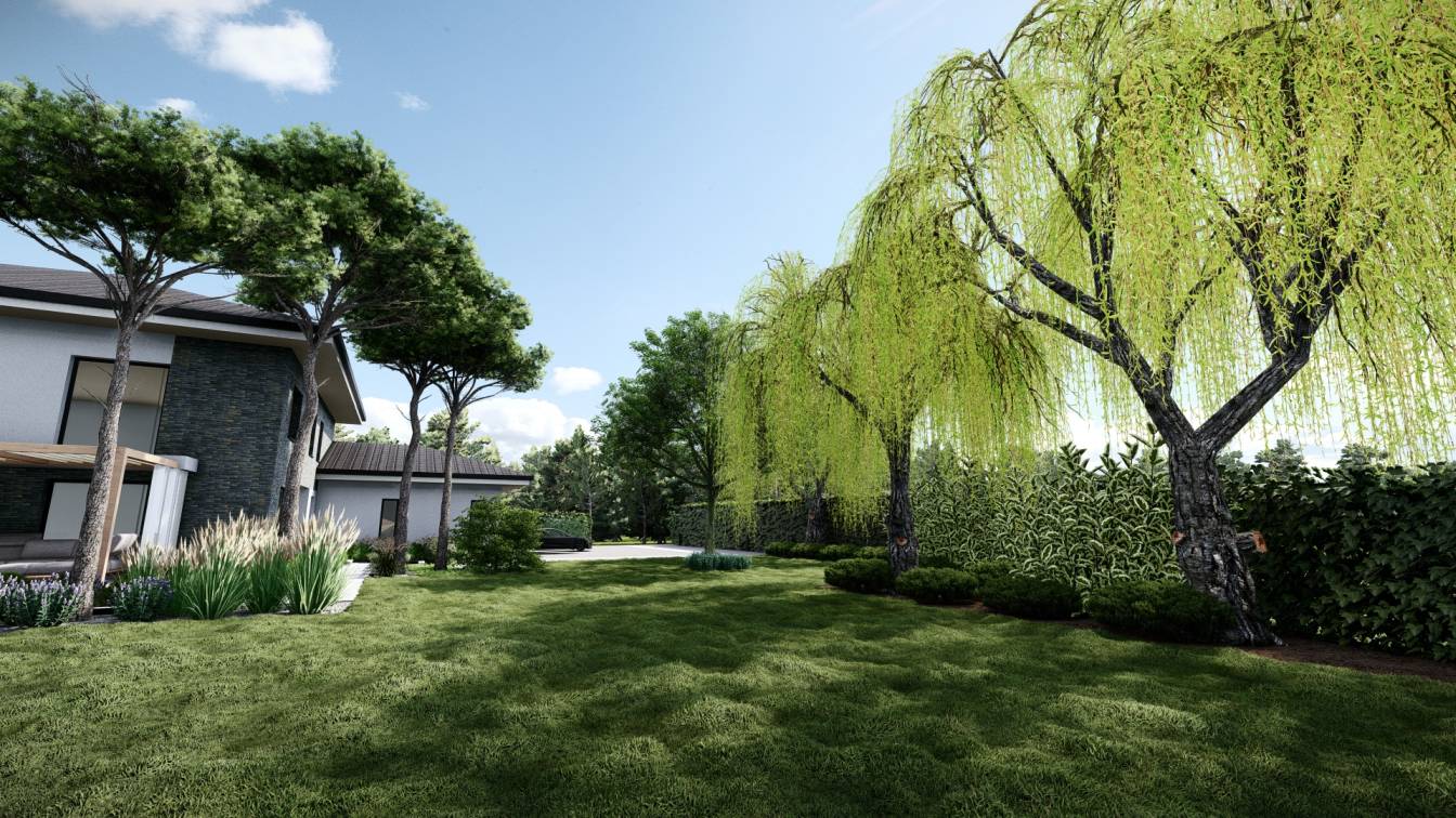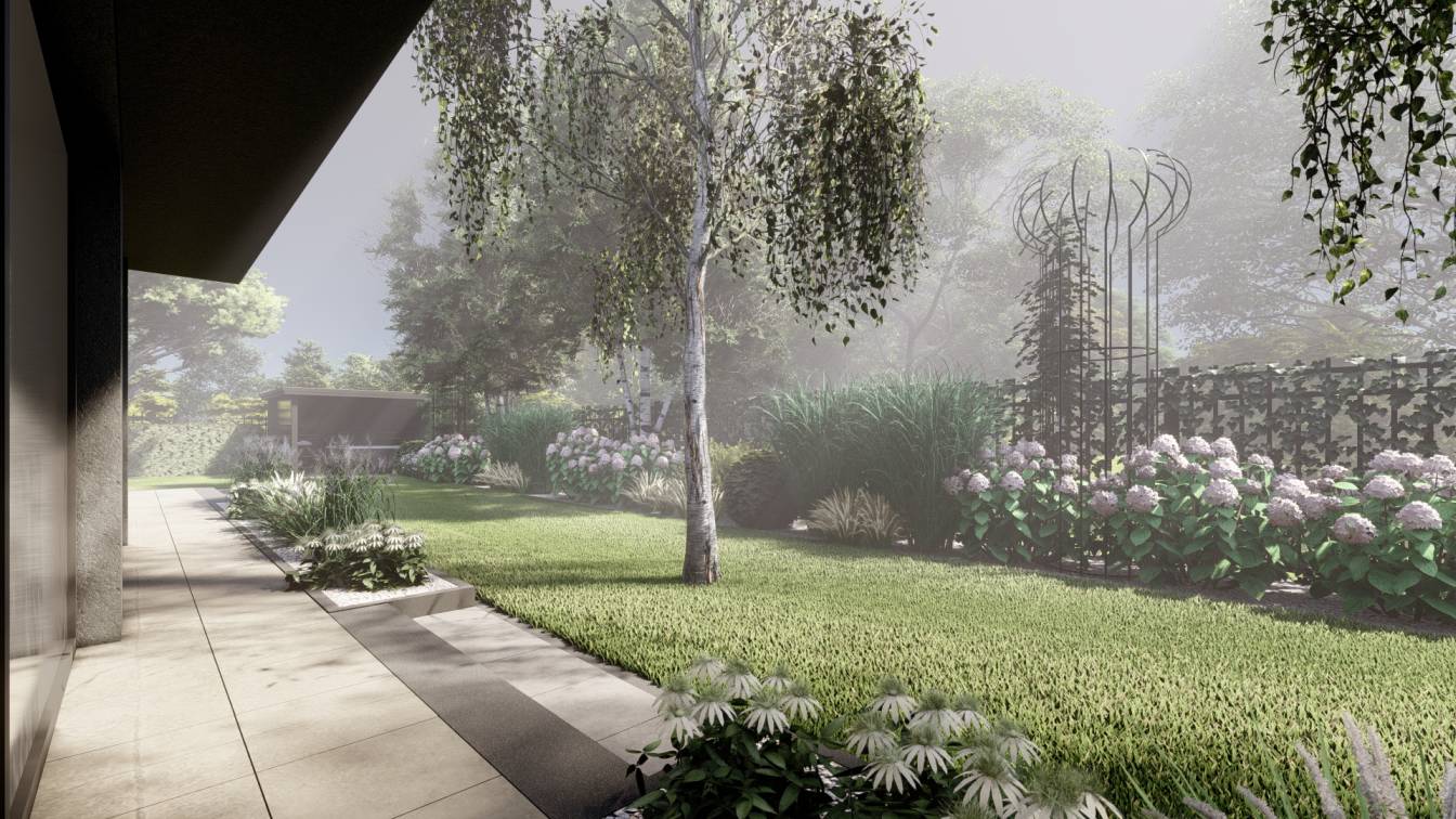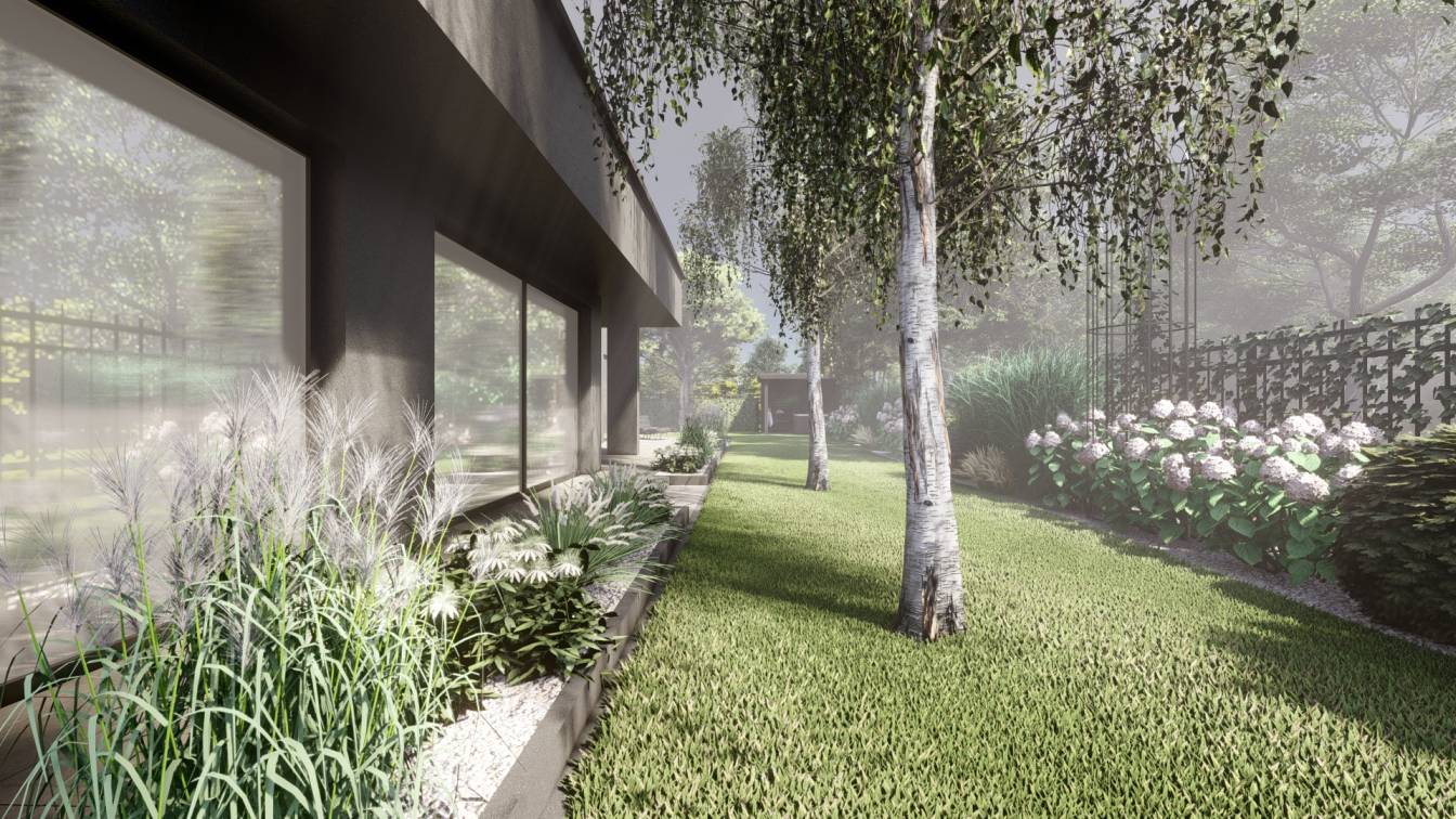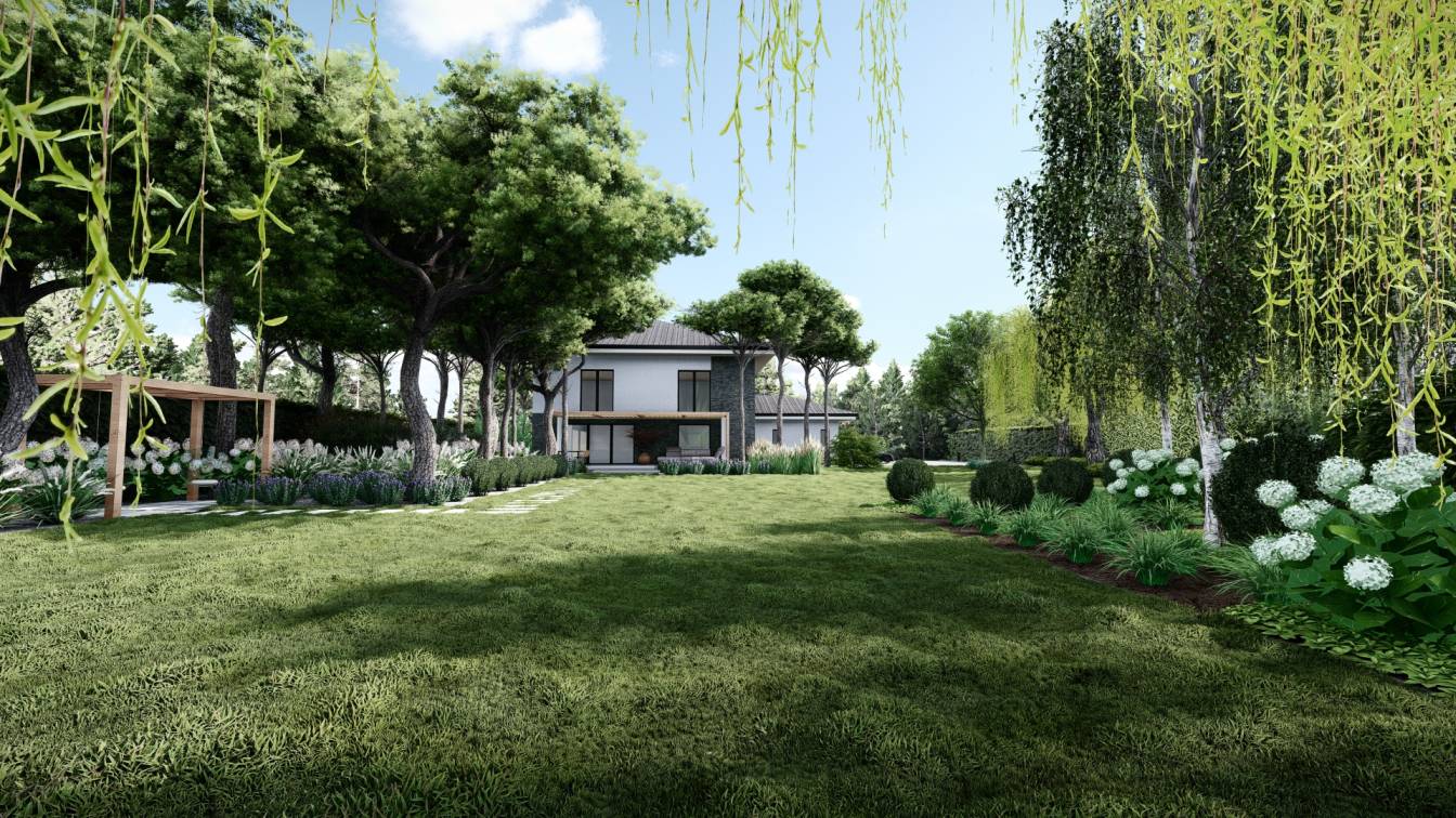 Aranżacja ogrodu zaprojektowana przy willi projektu Unique Residence.