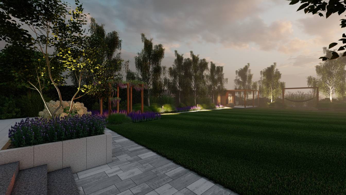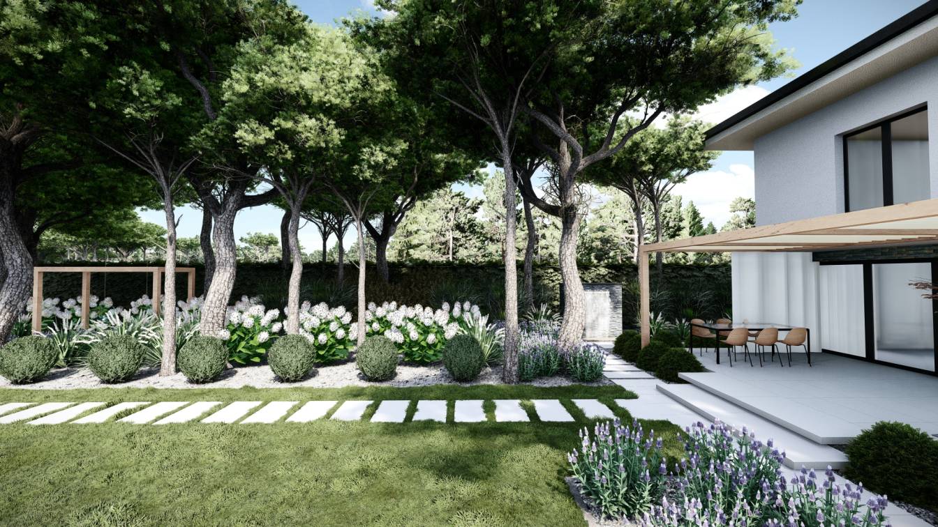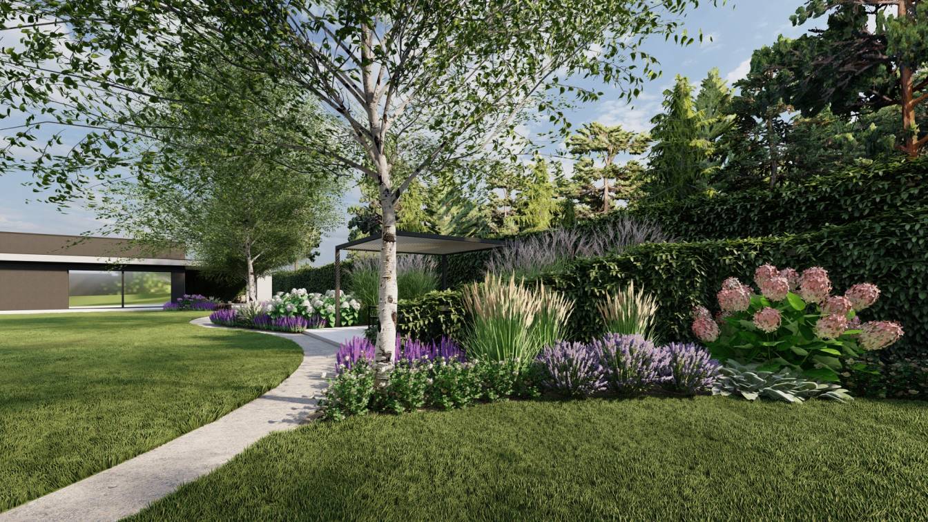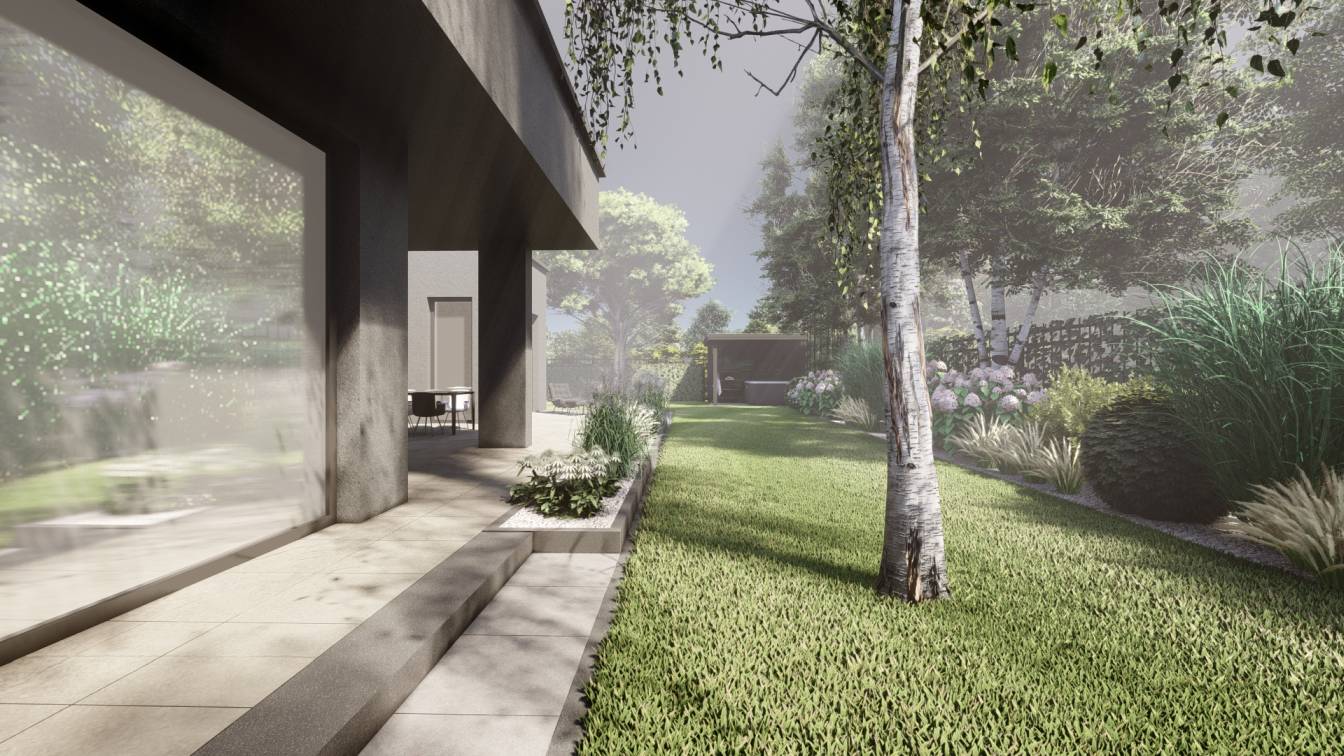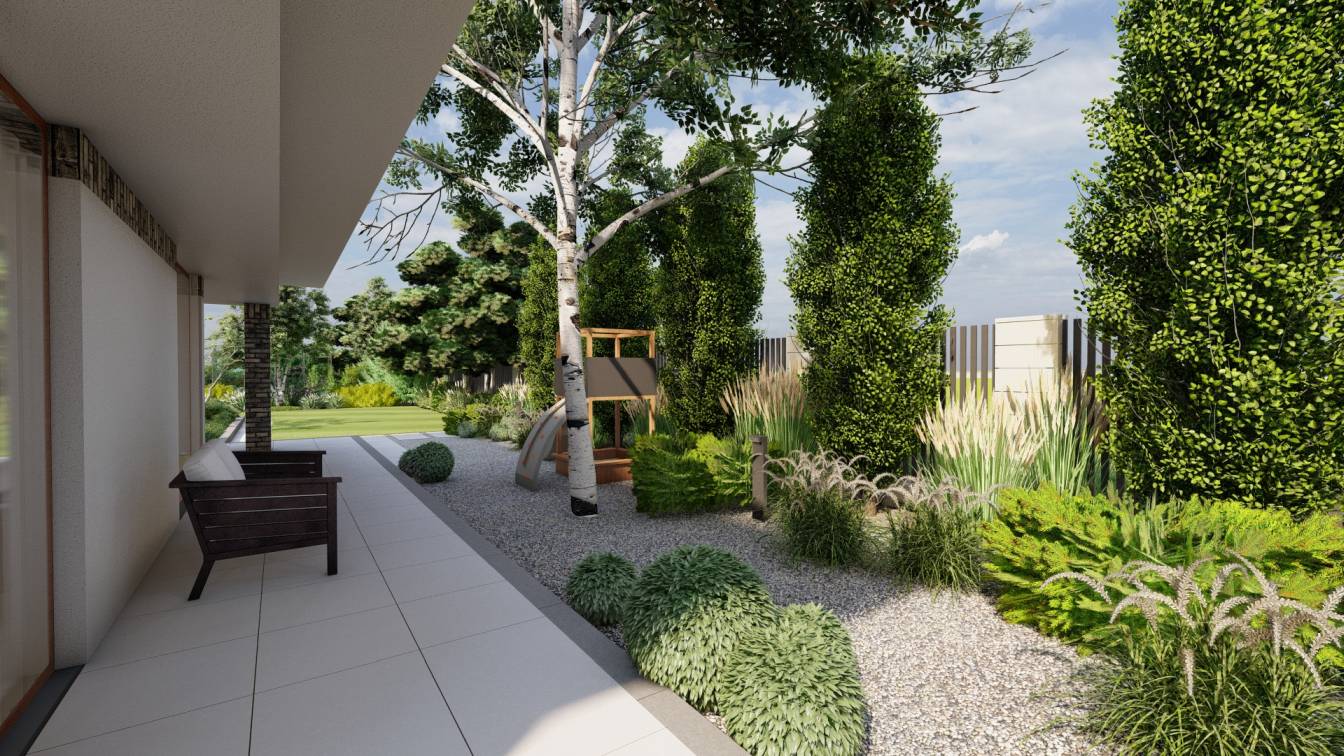 Aranżacja ogrodu zaprojektowana przy willi projektu Unique Residence.