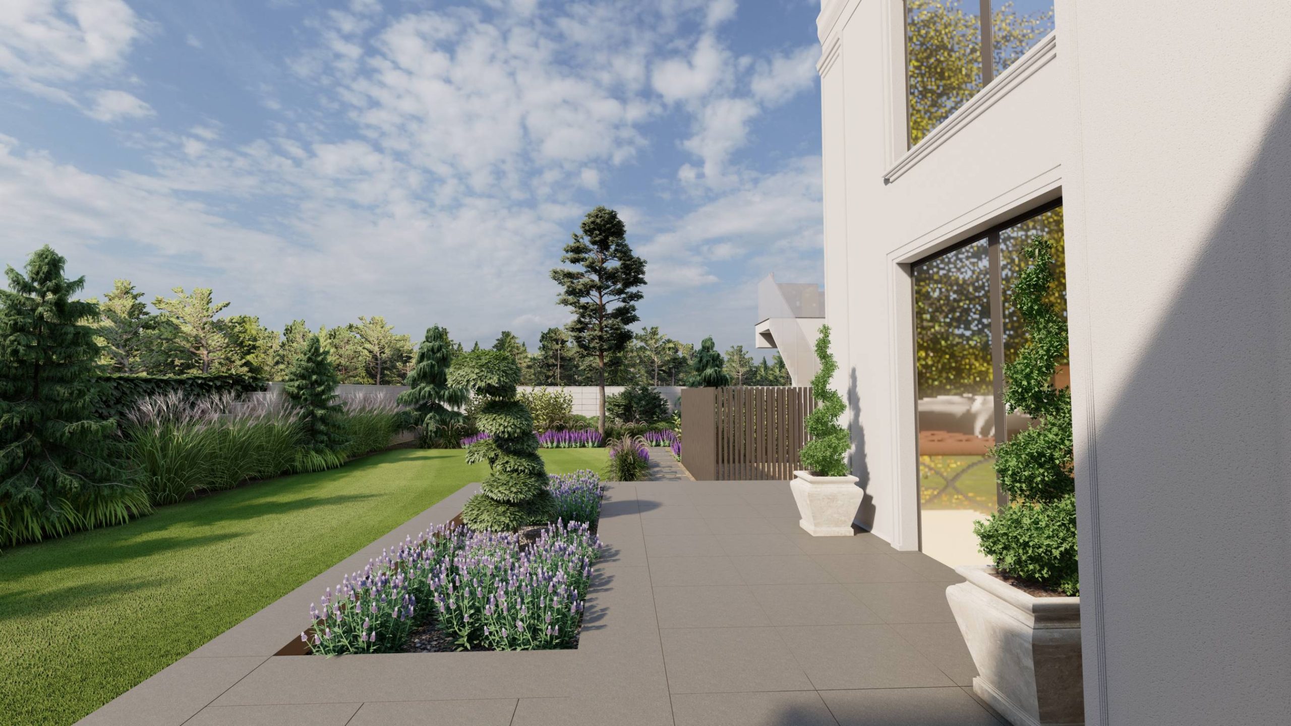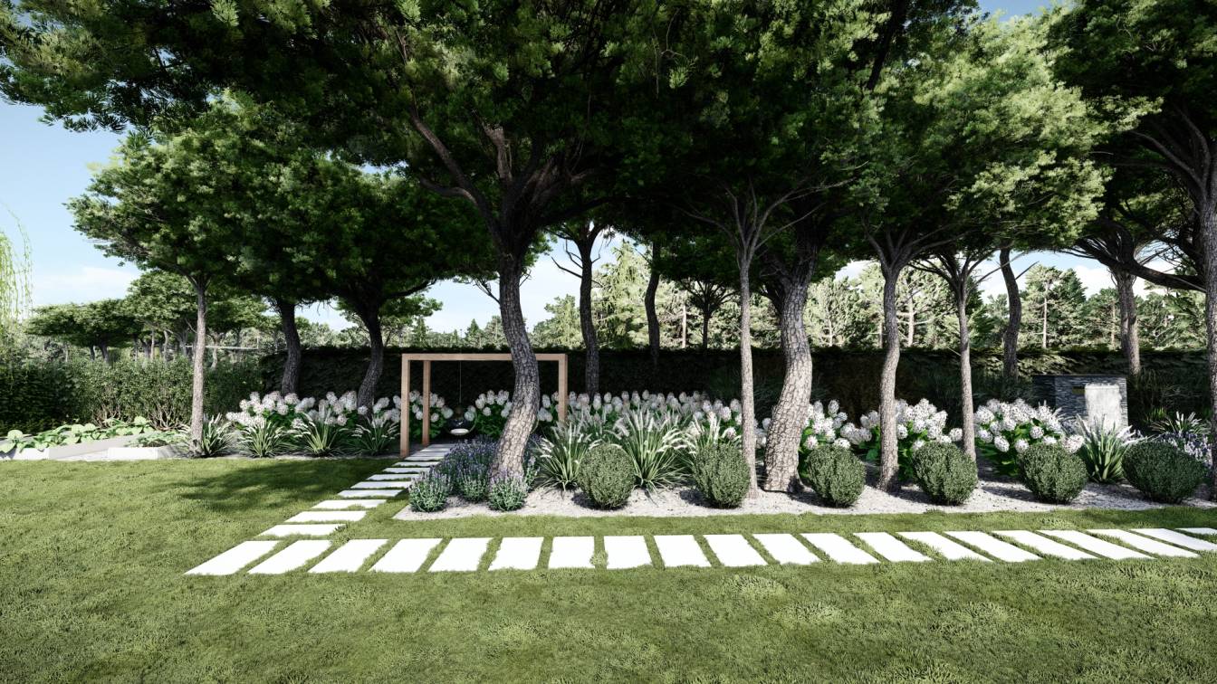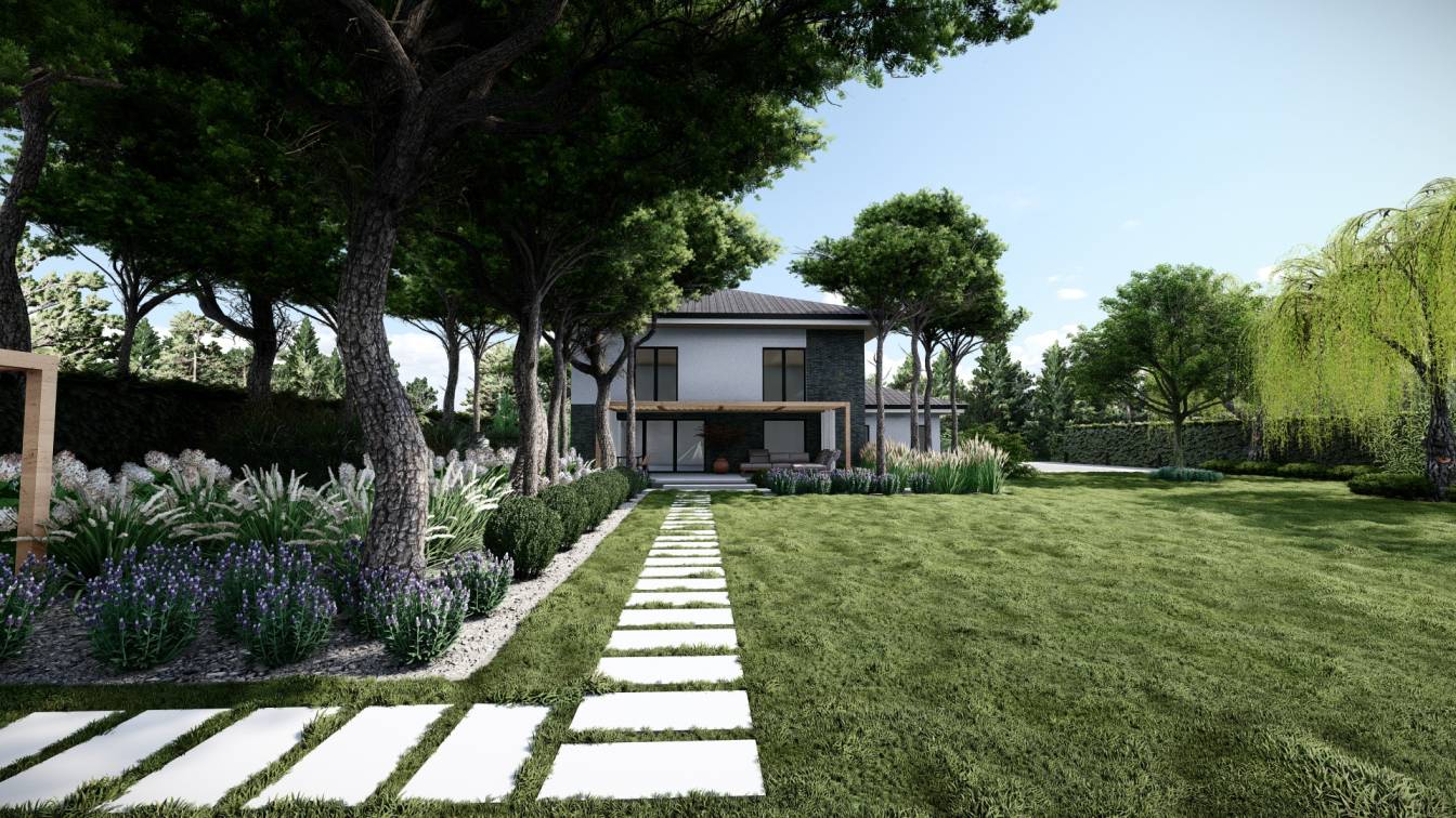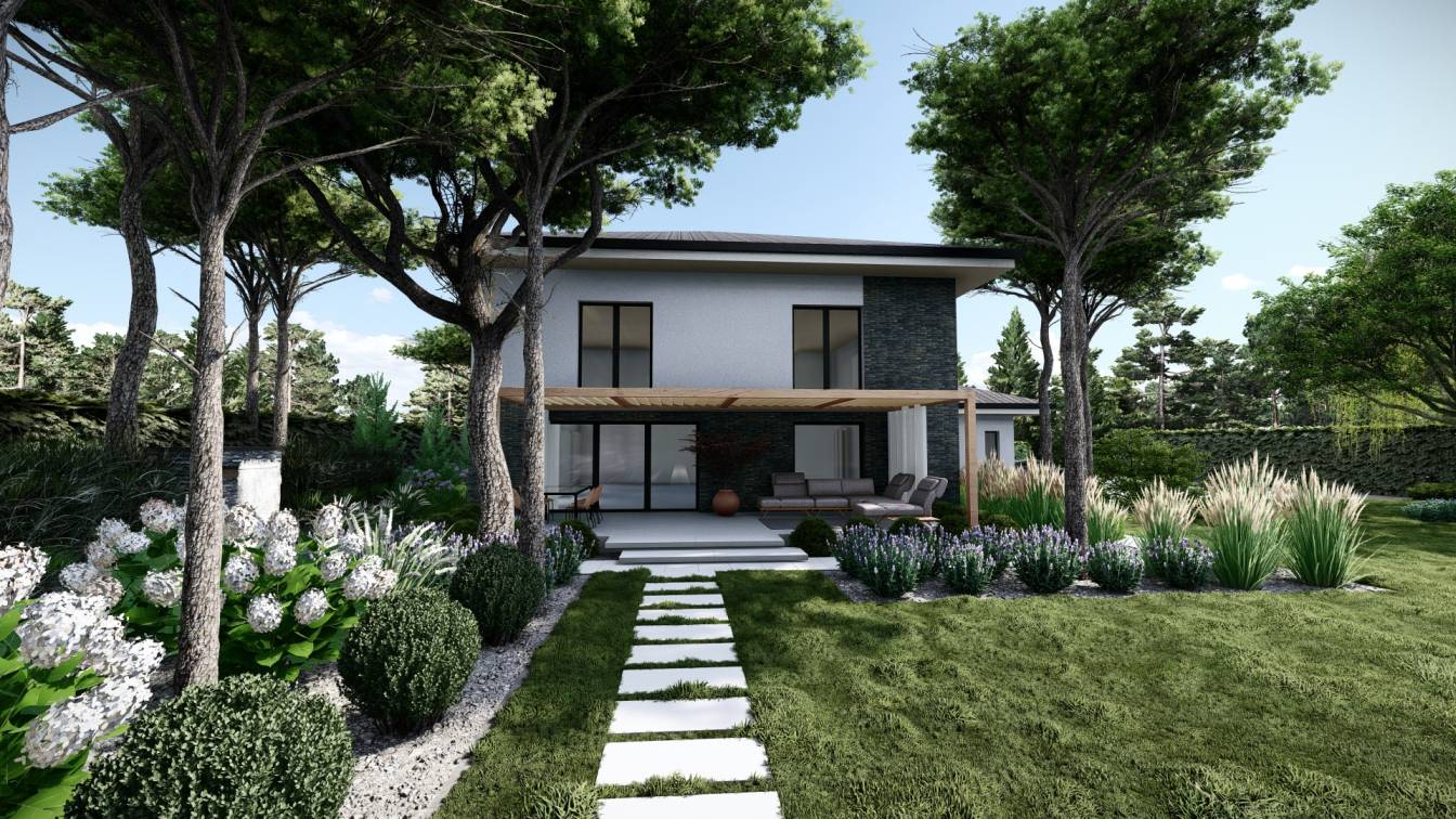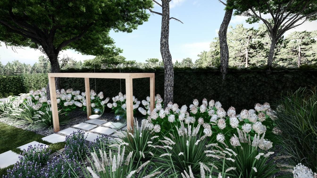 Aranżacja ogrodu zaprojektowana przy willi projektu Unique Residence.