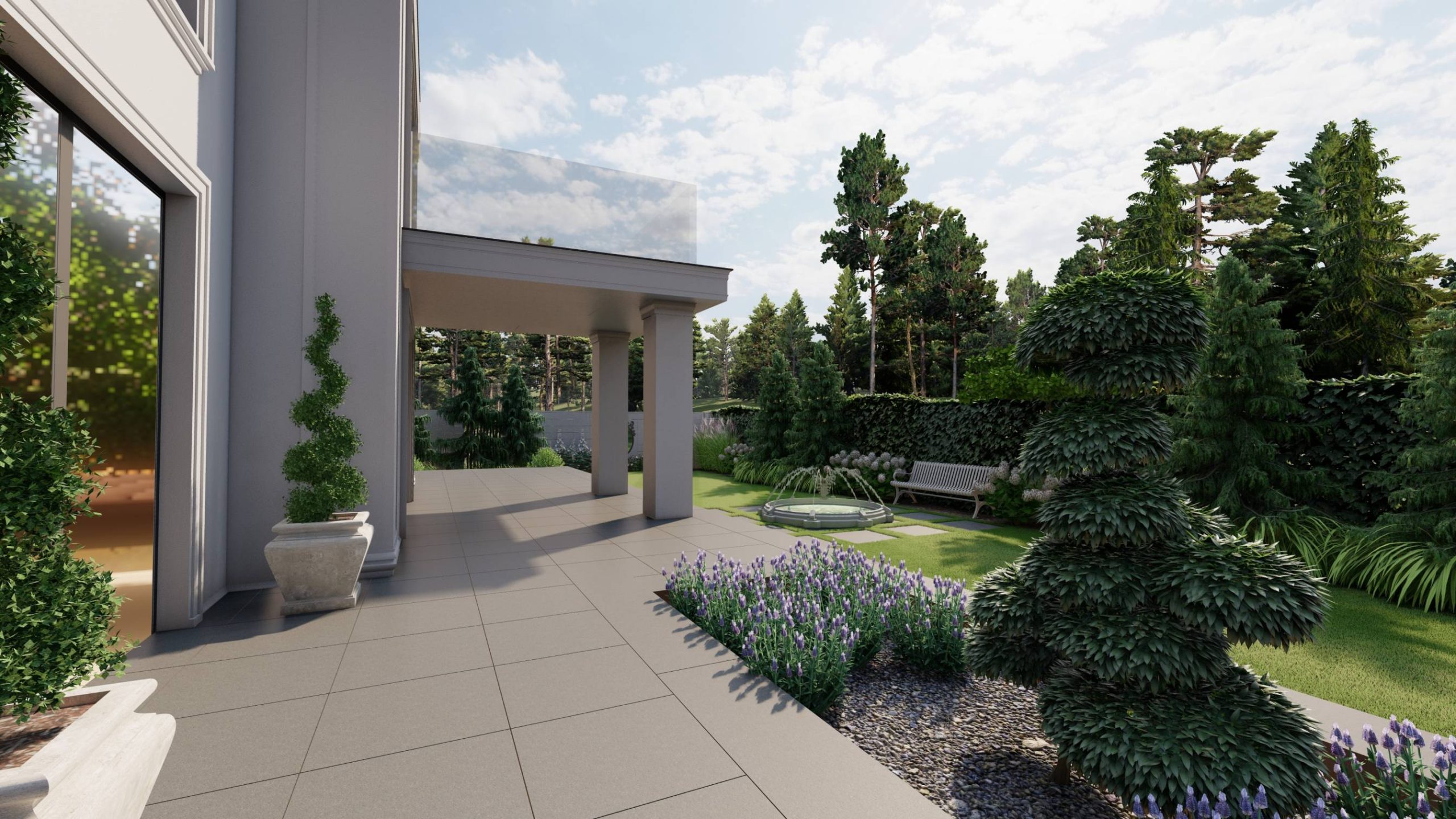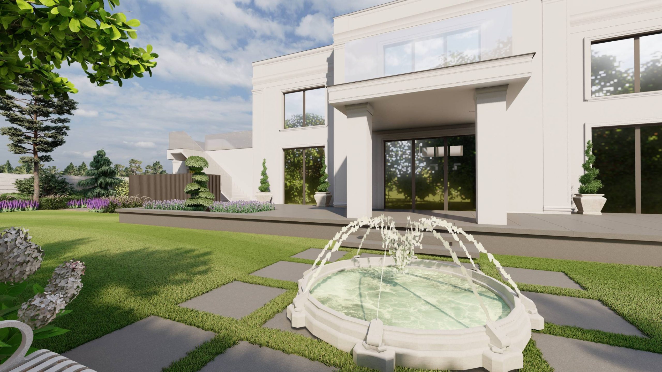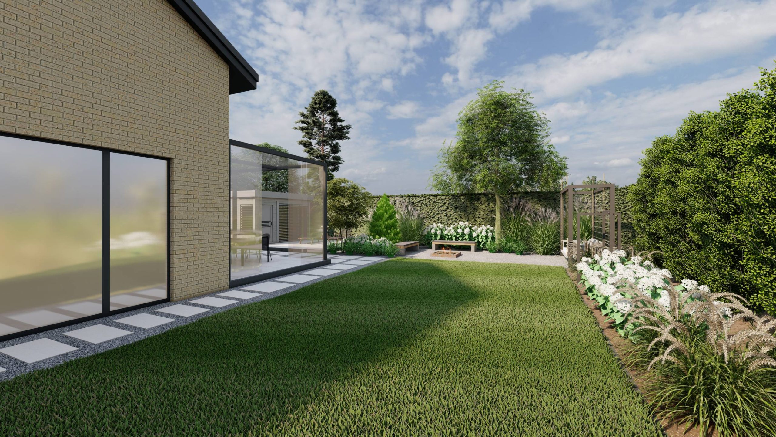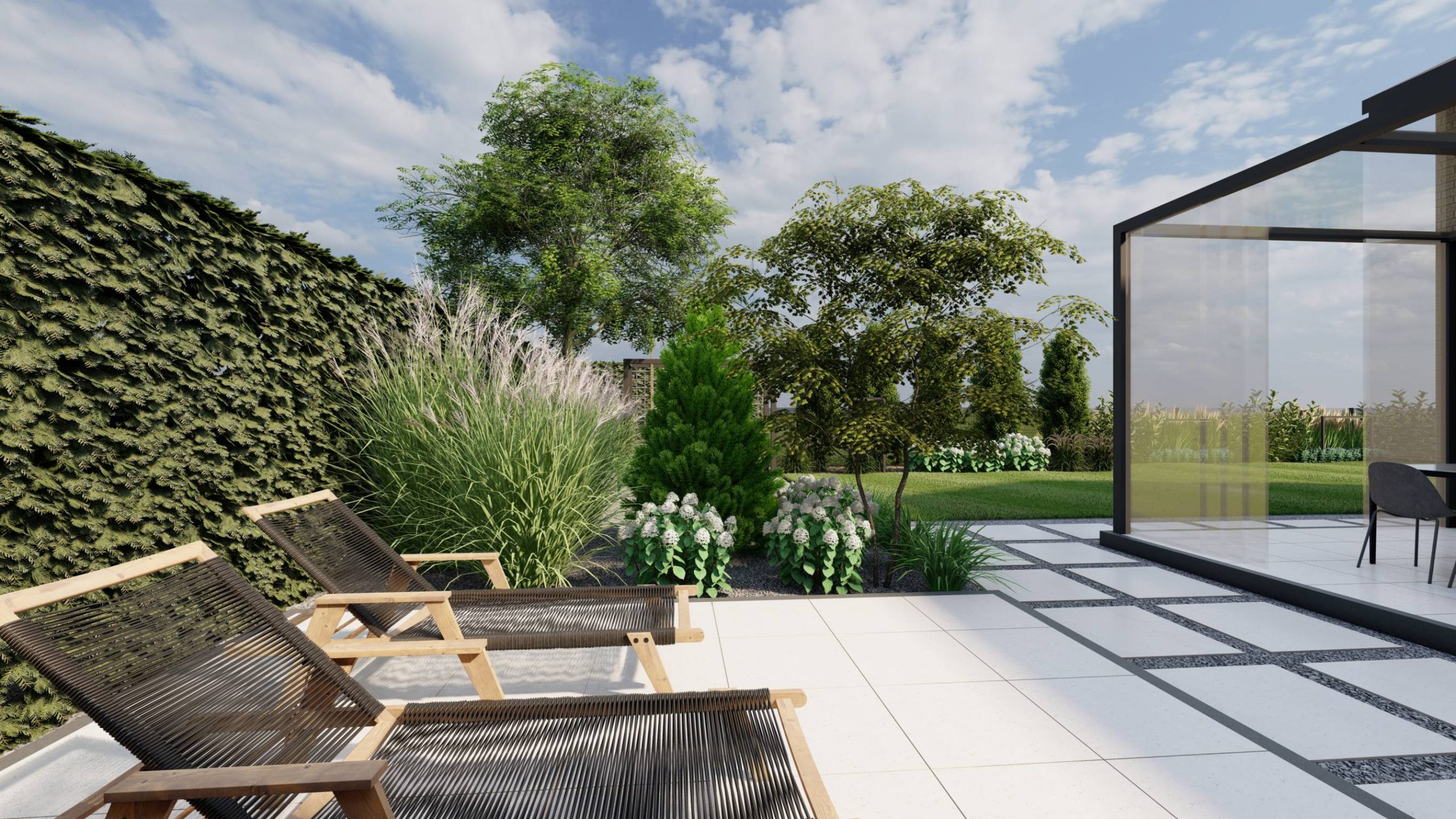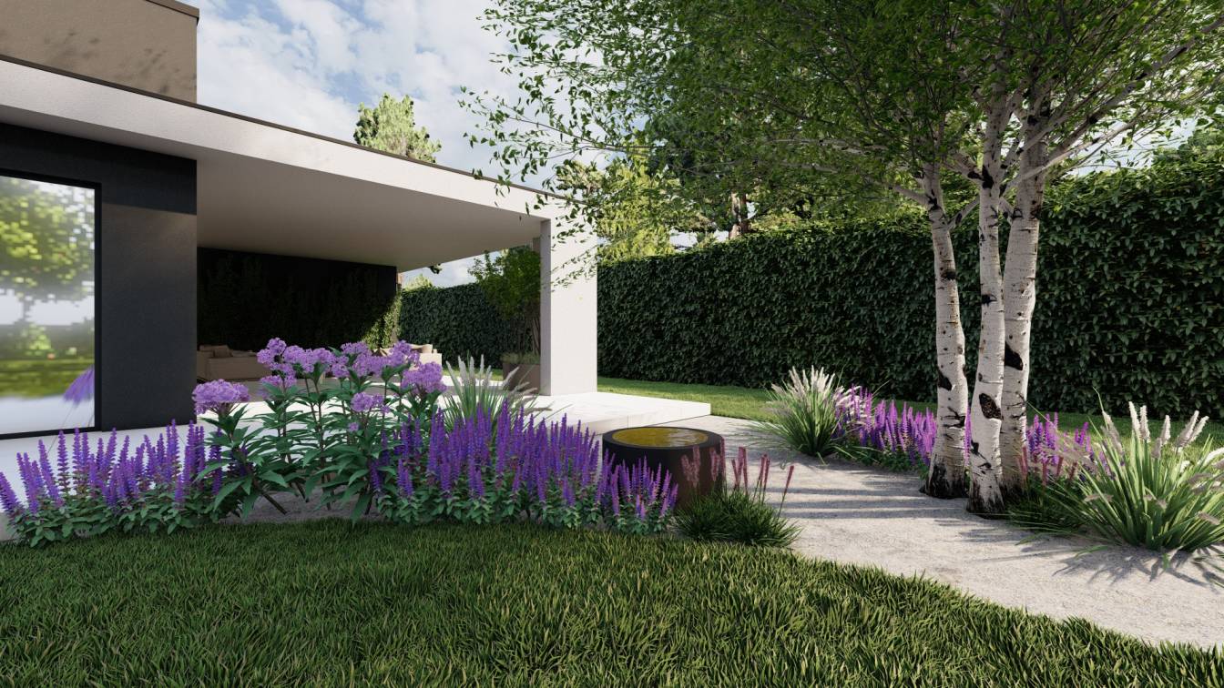 Aranżacja ogrodu zaprojektowana przy willi projektu Unique Residence.