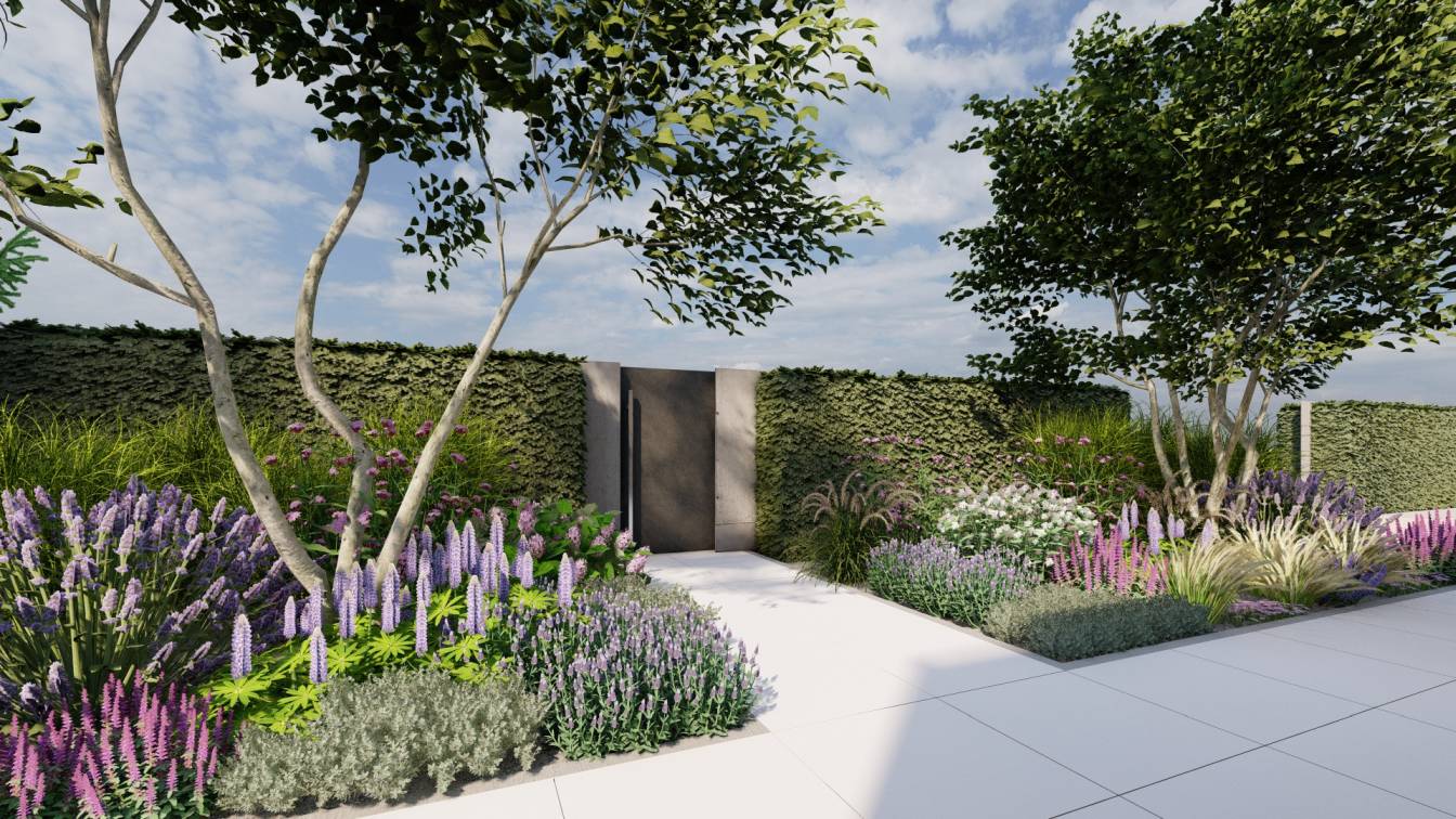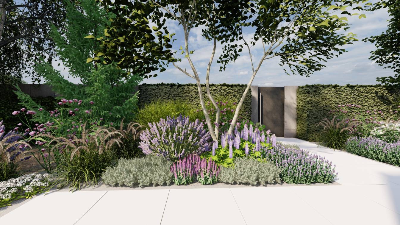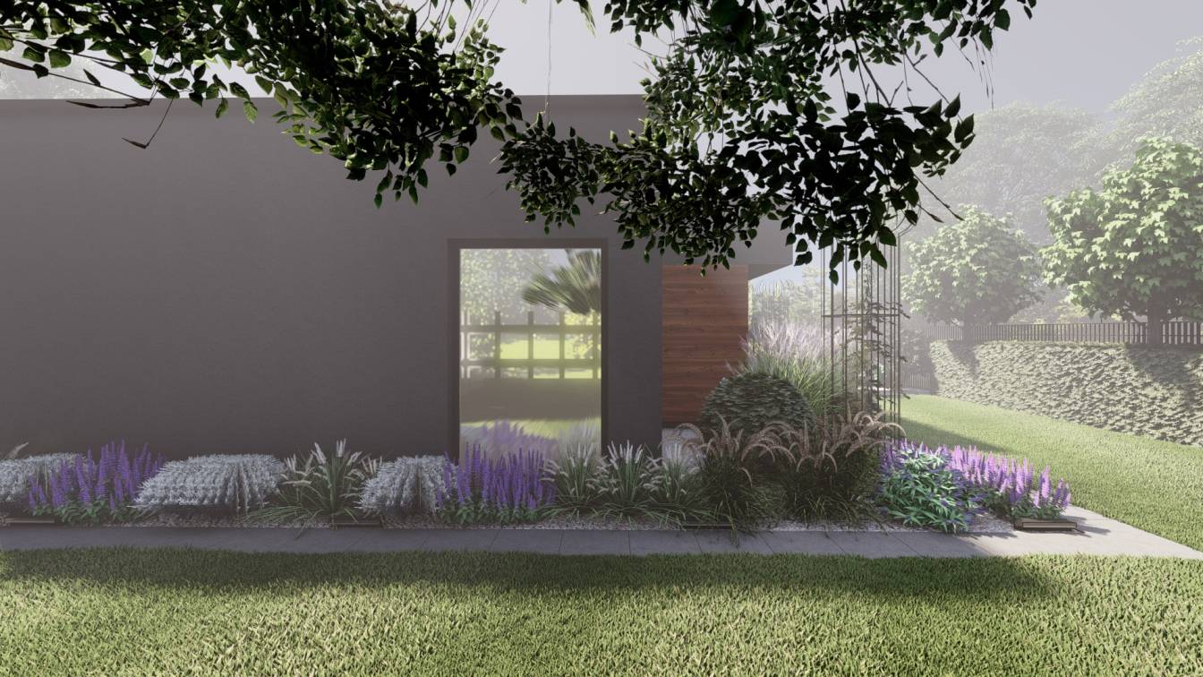 Założenie było takie, by ogród szybko wypełnił się trawami i bylinami, tworząc gęstą, swobodną kompozycję.