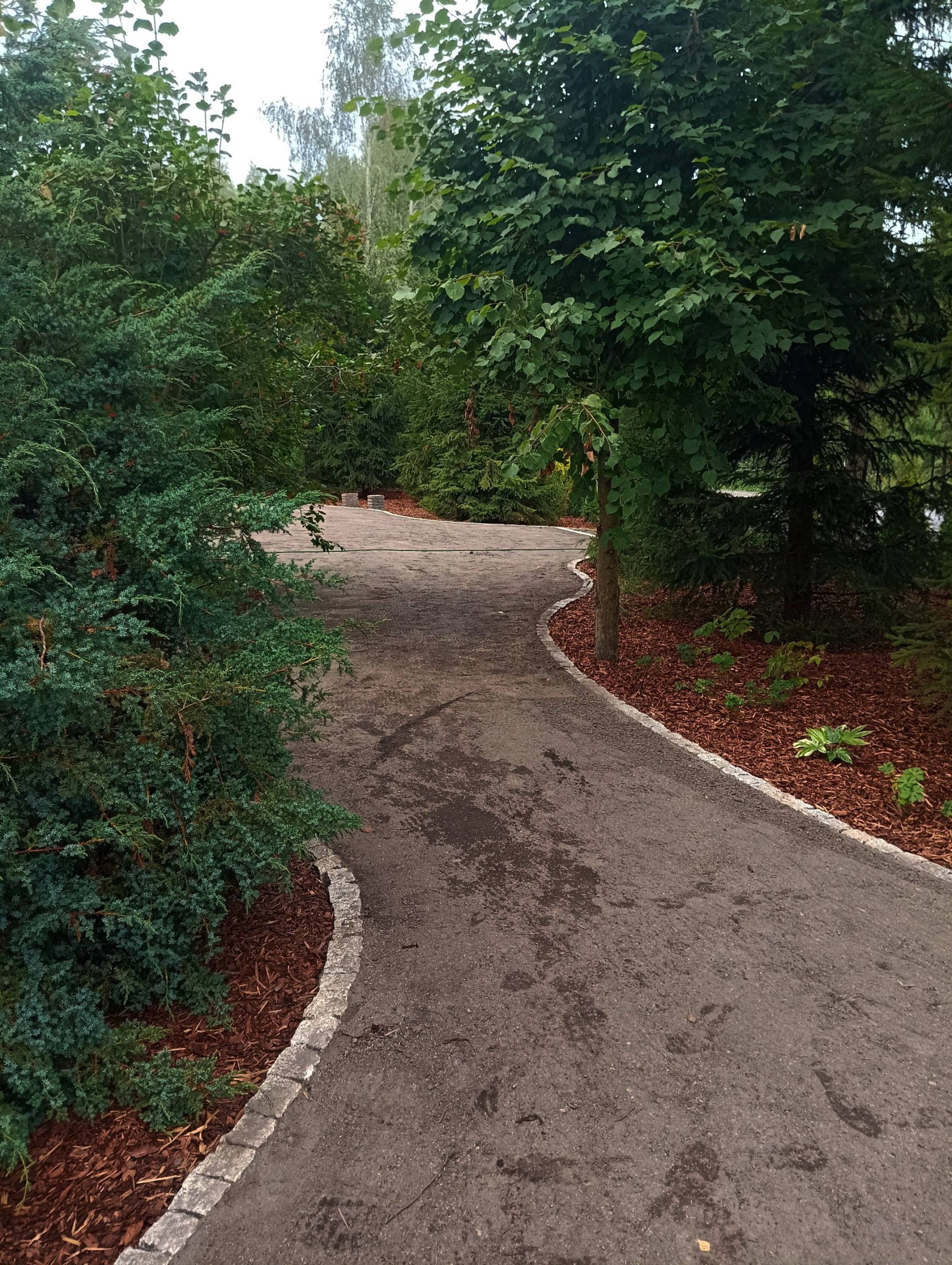 Zastosowano dużo roślin zimozielonych: cisy, choiny, świerki, laurowiśnie, różaneczniki oraz sosny w różnych odmianach.