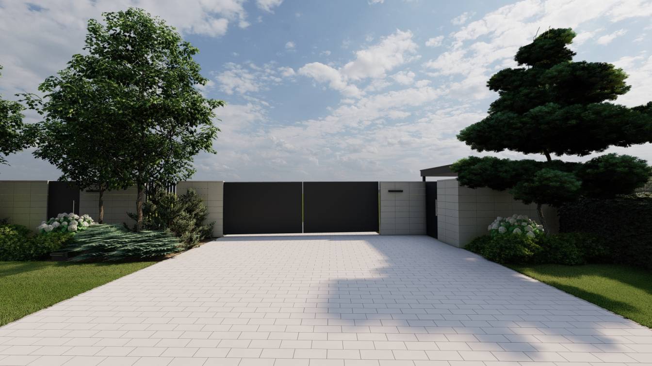 Duża przestrzeń pozwoliła zaprojektować szerokie podjazdy oraz wygodne dojścia.