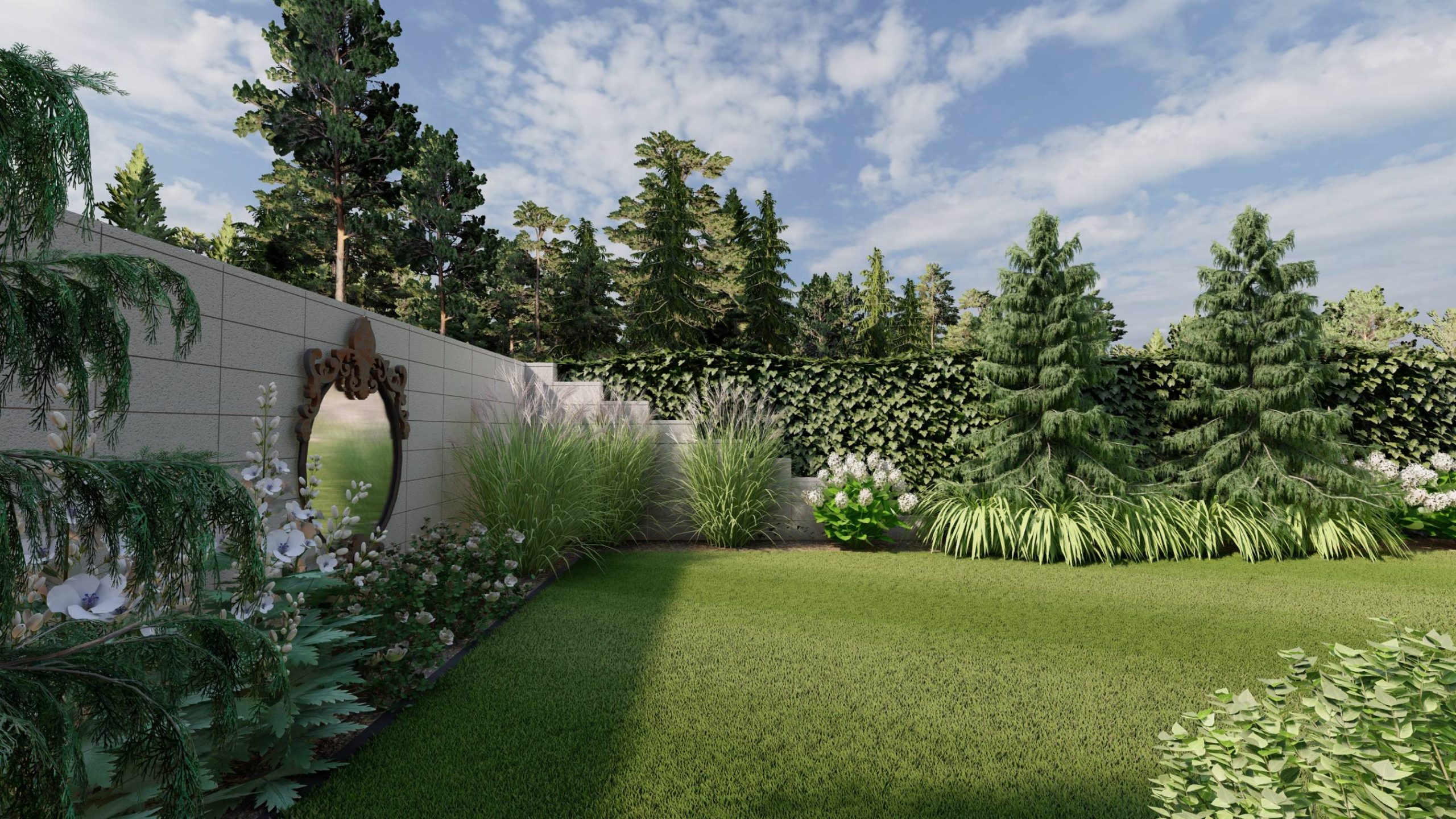 Ogród zaprojektowany w stylu klasycznym, dworkowym.